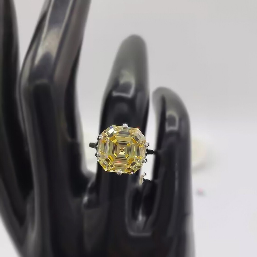 15.20 Ct Emerald Off White Diamond Ring in 925 Sterling Silver Rings