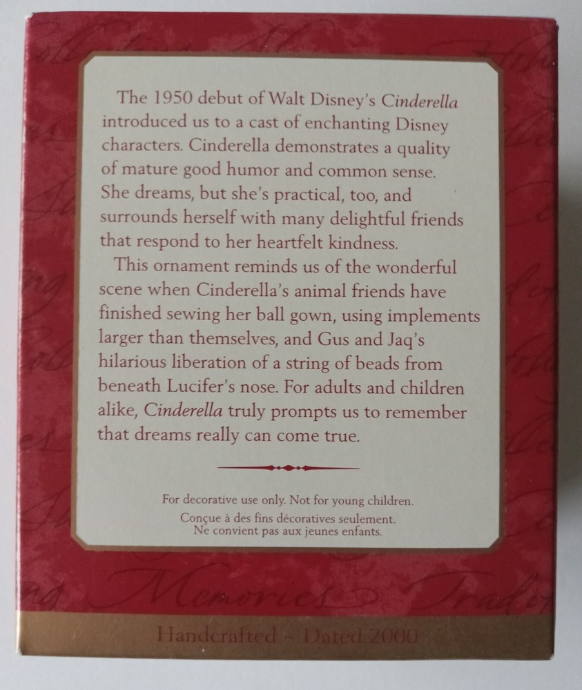 Hallmark Keepsake Disney Welcomes 2000 Dressing Cinderella, Walt Disney's Cinderella in original box with original plastic packing container. The box and ornament are in great condition with no marks, stains, scratches, broken or missing parts. Additional photos upon request. Item will be shipped in safe and secure packaging.