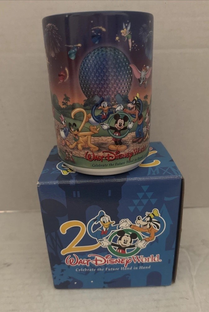 2000 Walt Disney World Celebrate the Future Hand in Hand 16oz Coffee Cup Mug NIB. Condition is New. Shipped with USPS Ground Advantage.