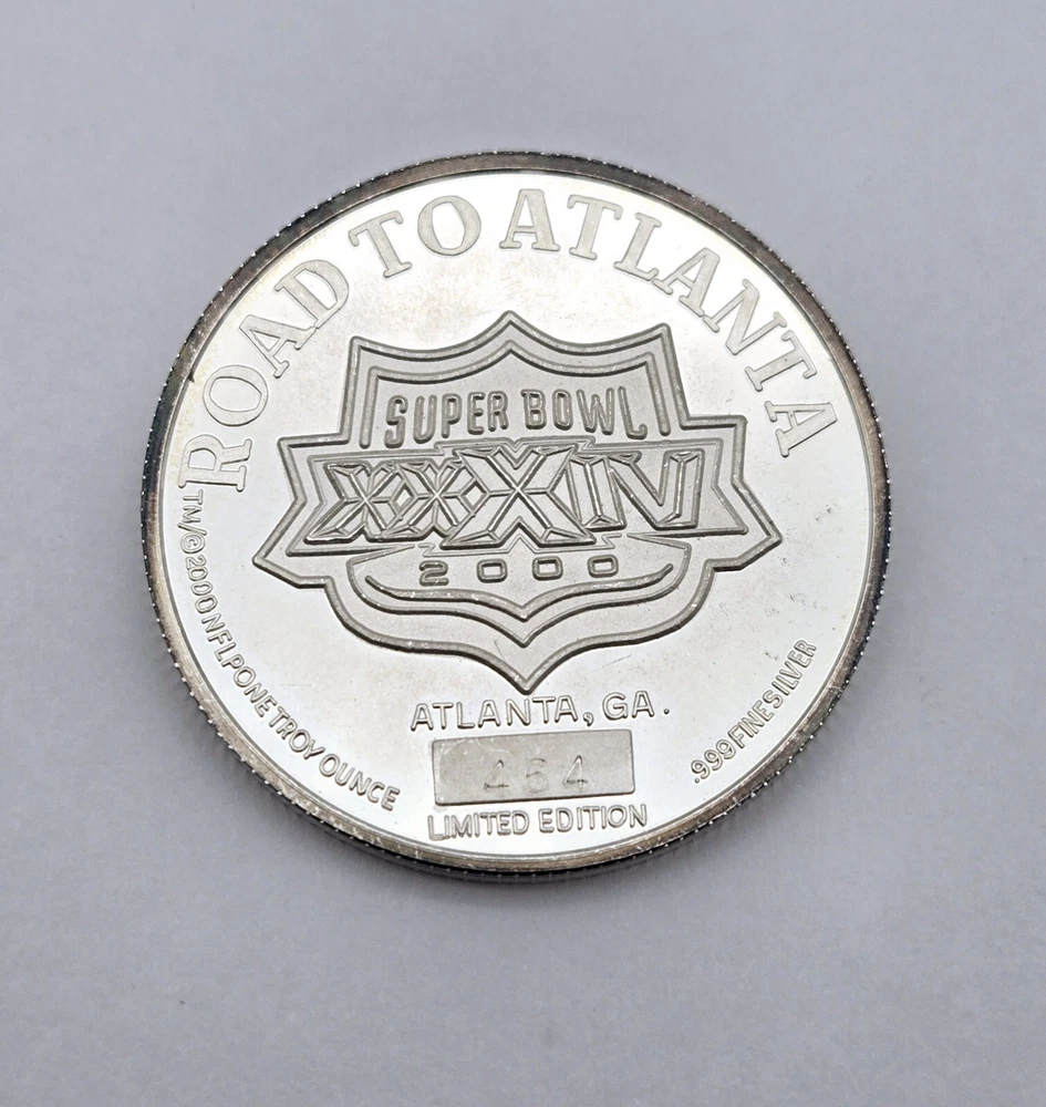 2000 Fine Silver 1 Oz St Louis Rams Superbowl Kurt Warner Coin Limited Edition