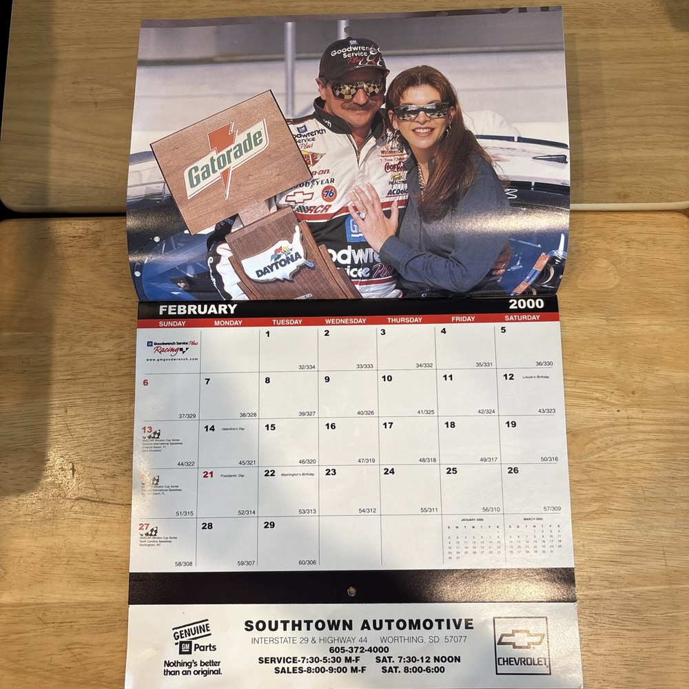The 2000 GM Goodwrench Service Plus Racing NASCAR Calendar featuring DALE EARNHARDT Photos is a collectible item for fans of NASCAR and auto racing. This calendar showcases iconic photos of Dale Earnhardt, a legendary driver in the sport, and is a must-have for any racing enthusiast. The black color and one-size design make it suitable for both male and female adults who admire the Earnhardt Ganassi Racing team and Dale Earnhardt himself. This unique memorabilia is a great addition to any sports fan's collection. Never written in and no tears or folds