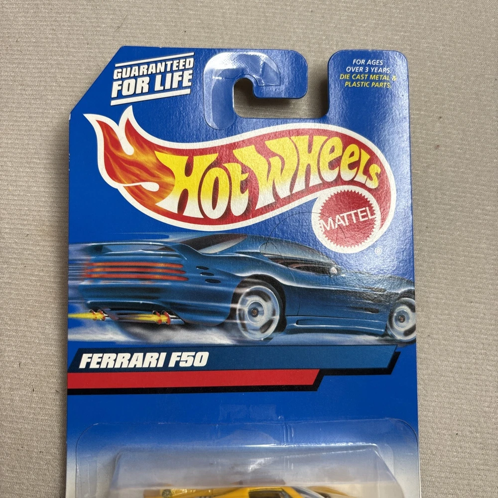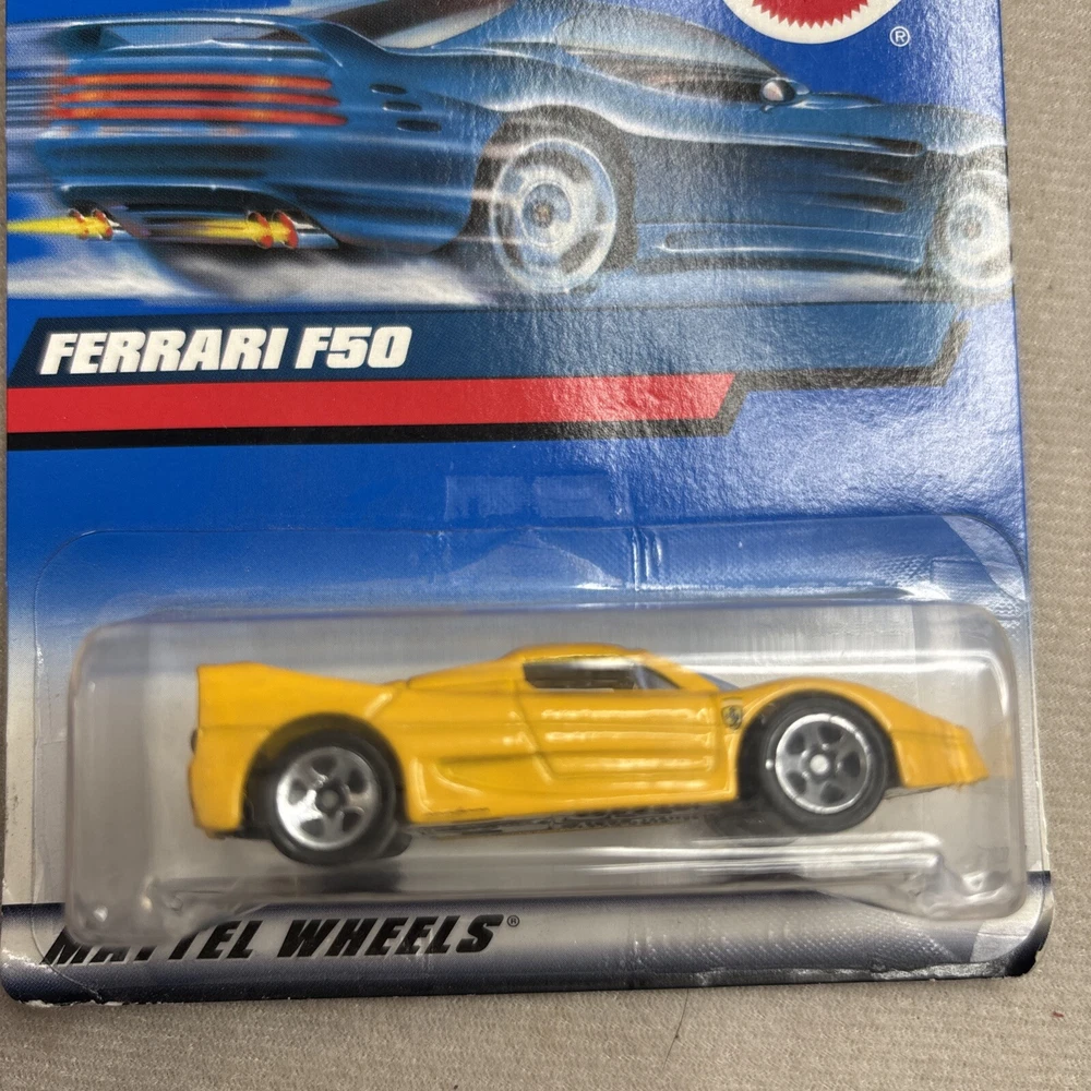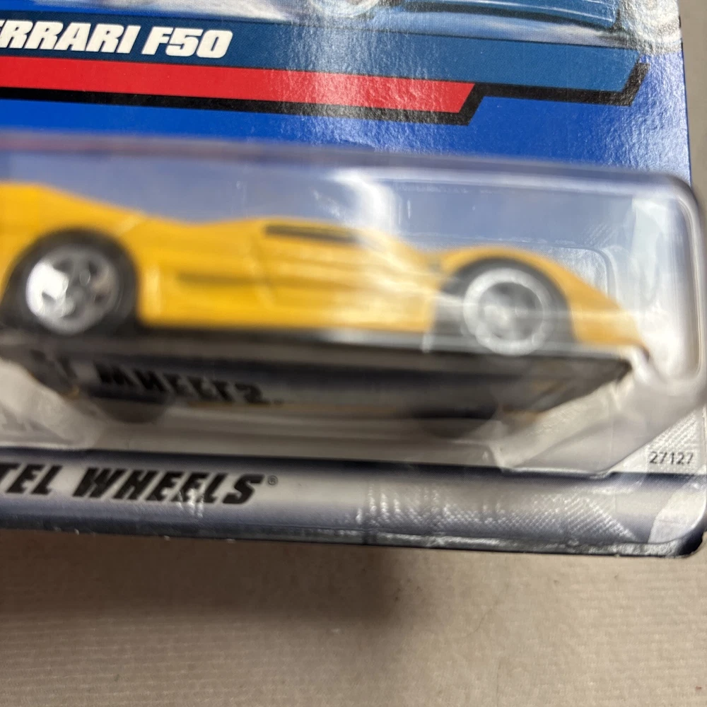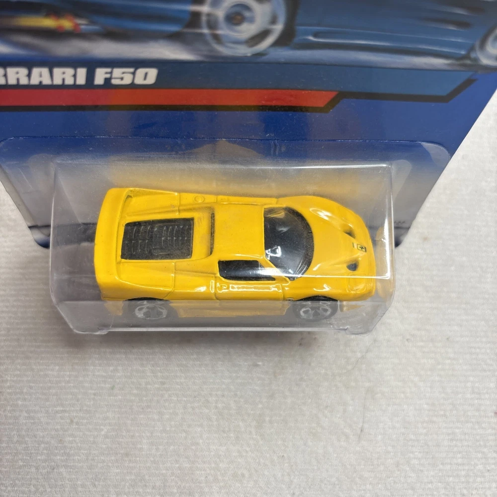 2000 Hot Wheels Yellow Ferrari F50 card #161 5 Spoke Mattel Die Cast