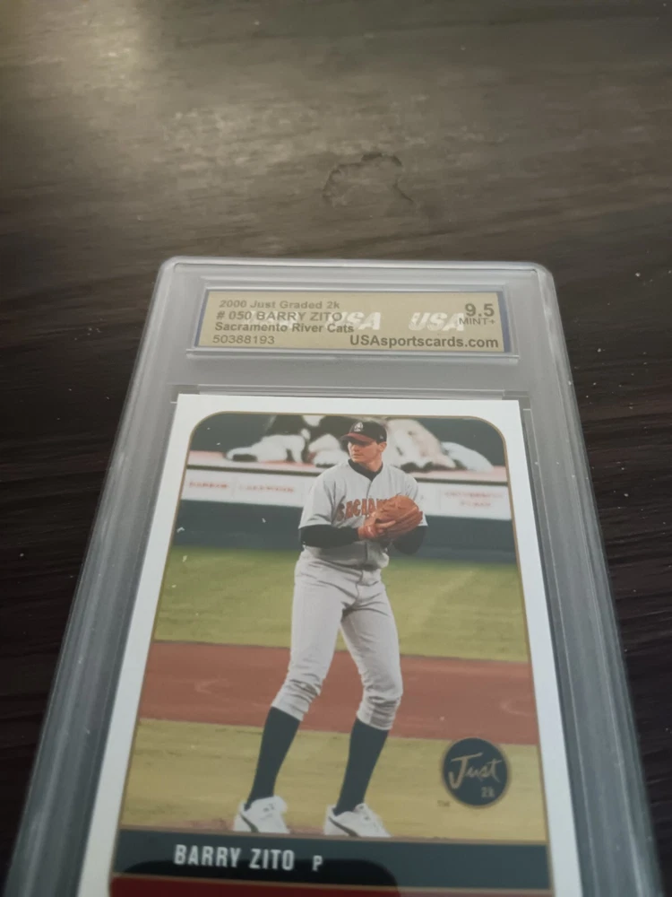 This 2000 Just Minors Just Graded sports trading card features Barry Zito, a former Major League Baseball player for the Sacramento River Cats. The card is part of the base set and is a rookie card, making it a must-have for any collector. It has a card number of 050 and is from the 2000 season. The manufacturer of the card is Just Memorabilia, and it is a great addition to any collection for fans of baseball and sports trading cards.