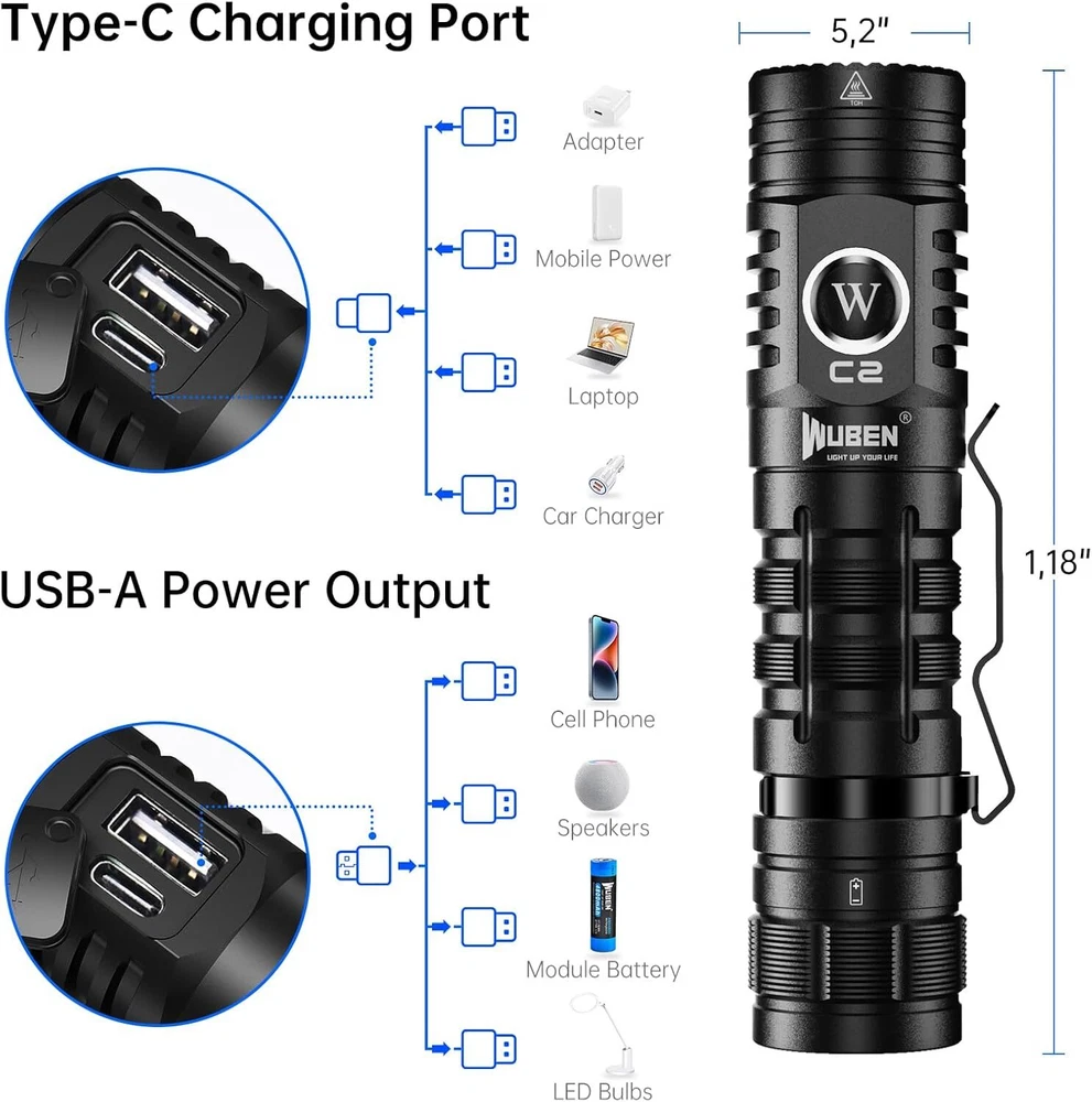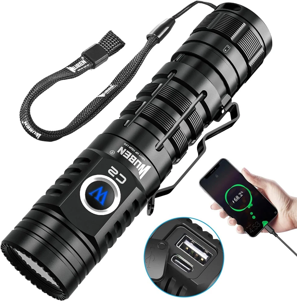 2000 Lumens Rechargeable Tactical Flashlights w... C2 Flashlights High Lumens