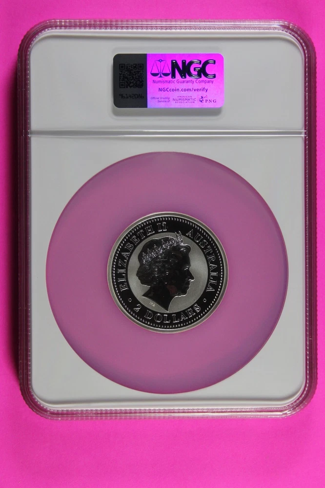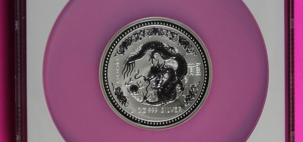 Brand/Mint: The Perth Mint Strike Type: Satin Total Precious Metal Content: 2 Troy Ounces Coin: Year of the Dragon Grade: MS 69 Certification: NGC Seller Notes: “You will receive the exact same coin in the pictures.” Shape: Coin Year: 2000 Fineness: 0.999 Composition: Silver Country/Region of Manufacture: Australia Brand: Perth Mint Precious Metal Content per Unit: 2 oz