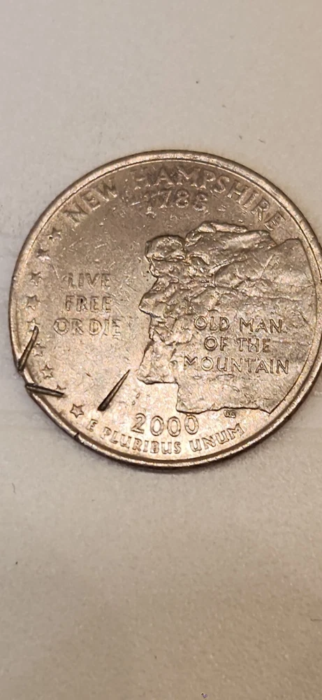 Mint Location:DenverYear:2000Grade:UngradedCoin:State QuarterDenomination:25CFeatures:ErrorStrike Type:staple strike throughCirculated/Uncirculated:CirculatedCertification:UncertifiedCountry/Region of Manufacture:United States
