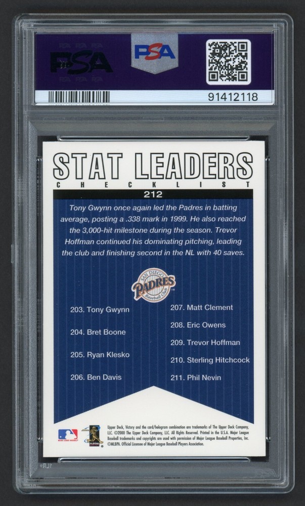 2000 Victory Tony Gwynn Trevor Hoffman #212 Padres Leaders HOF PSA 10 Gem Mint