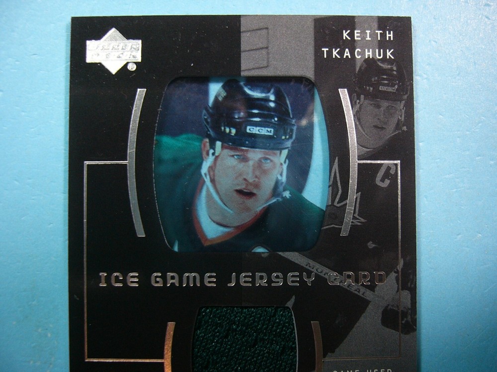 YOU ARE BIDDING ON A 2000/01 UPPER DECK ICE GAME JERSEY NHL HOCKEY CARD #JC-TK KEITH TKACHUK, PHOENIX COYOTES. CARD FEATURES A 100% ORIGINAL AND AUTHENTIC GAME-USED JERSEY SWATCH OF PLAYER NOTED ABOVE GUARANTEED BY UPPER DECK AS STATED ON THE BACK OF THE CARD. CARD IS IN NEAR MINT CONDITION . CORNERS ARE SHARP. ABSOLUTELY NO CREASES, BENDS OR WRINKLES. SEE SCANS FOR FURTHER CONDITION. GREAT COLOUR & GLOSS--A VERY SHARP, CLEAN & ATTRACTIVE SUPER POPULAR JERSEY CARD FROM THIS VALUABLE UPPER DECK ICE HOCKEY SET!!! THANK YOU FOR LOOKING AND GOOD LUCK!!! -------------------------------------------------------------------------------------------------------------------------------- SHIPPING WITHIN CANADA IS $3.99, TO THE UNITED STATES $4.99 AND INTERNATIONALLY $9.99 (EVERYWHERE ELSE). ITEM WILL BE CAREFULLY PACKAGED SO AS NOT TO GET DAMAGED DURING SHIPPING. IF YOU WOULD LIKE EXPEDITED SECURE SHIPPING WITH TRACKING & INSURANCE SHIPPING WITHIN CANADA IS $16.00, TO THE UNITED STATES IS $25.00 AND EVERYWHERE ELSE $50.00. I DO COMBINE SHIPPING ON MULTIPLE PURCHASES--ONLY 50 CENTS PER ADDITIONAL GRADED CARD OR ONLY 20 CENTS MORE PER ADDITIONAL SINGLE UNGRADED PHOTO OR CARD. TAKE A LOOK AT MY OTHER AUCTIONS AND SAVE ON SHIPPING!!!