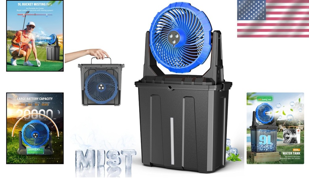 20000mAh Portable Misting Fan with 9L Bucket – Ideal for Outdoors & Camping ‹ › ‹ › ‹ › ‹ › ‹ › ‹ › ‹ › ‹ › ‹ › ‹ › 20000mAh Portable Misting Fan with 9L Bucket Ideal for Outdoors & Camping Features: Upgraded misting function allows for a refreshing, cool water mist with adjustable fan speeds. Comes with a large 9L water bucket that allows for 5-9 hours of continuous use. Equipped with 3 spray outlets for greater air volume, wider range, and a farther misting distance than single-hole fans. Powered by a high-performance 20000mAh lithium battery for exceptional battery life. 3 adjustable speed settings: weak, strong, and super strong, accommodating all your cooling needs. Portable and easy to store, simply turn the fan over and store it inside the bucket when not in use. Benefits: Exquisite design for easy transport and storage, making it perfect for outdoor adventures. Enjoy cool relief from the sweltering heat during camping trips, beach days, and outdoor events. Effortlessly operates without needing a standard power socket, bringing you coolness wherever you go. Whisper-quiet operation allows for restful nights in tents without disturbance. A thoughtful summer gift wrapped in an elegant box, perfect for friends and family who love the great outdoors. Why Choose Our Portable Misting Fan? Beat the heat with our 20000mAh Portable Misting Fan, designed specifically for the outdoor enthusiast. Unlike traditional fans, our upgraded misting feature provides a refreshing, cooling mist that instantly evaporates, leaving your skin feeling revitalized on those hot summer days. The impressive 9L water bucket means less time refilling and more time enjoying your favorite outdoor activities. With powerful battery life, exceptional airflow, and quiet operation, this fan is your ideal companion for camping, picnics, barbecues, or just lounging in the garden. It's the ultimate blend of functionality and portability. Don't let heat spoil your adventures; order your 20000mAh Portable Misting Fan today and stay cool wherever your journey takes you! Shipping Free & Fast Shipping - We offer free shipping to most of the USA with a normal delivery time of 3-7 days. However, due to the current situation, additional delivery time (up to 3 weeks) may be required for some items. Alternative Carriers - We may use alternative carriers (e.g. USPS, FedEx, UPS, etc.) to ensure your package arrives safely and on time. Due to the use of multiple carriers, we are unable to provide a tracking number automatically. Handling Time - Orders are processed and shipped within 1-2 business days of receiving cleared payment. Shipping Restrictions - Shipping to Alaska, Hawaii, Puerto Rico, Guam, and other US territories may incur shipping charges or delivery restrictions. Please contact us before ordering, or your order can be refunded/cancelled. State Restrictions - There may be restrictions based on your state of purchase. For example, certain items may not be shipped to California due to state regulations. Contact for Tracking Updates - If you require tracking updates or have any concerns about the delivery of your order, please feel free to contact us, and we will be happy to assist you. Return 30-Day Hassle-Free Returns - We want you to be completely satisfied with your purchase. If you are not, you can return the item within 30 days of receiving it for a full refund or exchange. Easy Return Process - To start a return, simply contact us and we will provide you with a prepaid return shipping label and detailed instructions. Restocking Fee - There are no restocking fees for returns. However, the buyer is responsible for return shipping costs if the return is not due to a seller's error. Refund Processing Time - Refunds will be processed within 5 business days of receiving the returned item in its condition. Payment We accept all major credit cards, PayPal, and Apple Pay for your convenience. Your payment information is secure and encrypted to ensure a safe and seamless transaction. Please complete your payment within 3 days of purchase to avoid any delays in shipping. Feedback Your feedback is extremely important to us. We strive to provide the best products and customer service possible. If you are satisfied with your purchase, please take a moment to leave us a positive review. If you have any concerns or issues with your order, please contact us before leaving negative feedback. We are committed to resolving any problems and ensuring your satisfaction. Contact Us If you have any questions or concerns, please feel free to out to our customer support team. You can contact us through the eBay messaging system. We are available Monday to Friday, 9:00 am to 5:00 pm EST, and we will do our best to respond to your inquiry within 24 hours. Buy it now and enjoy a pleasant shopping experience! Air Flow Volume: Not specified Unit Quantity: 1.0 count Features: Rechargeable,Misting,Portable,3 Large Spray Outlets,3 Adjustable Speeds,Lightweight,Easy to Store Power Source: Battery Material: Plastic Mounting: Free Standing Smart Home Protocol: Not applicable Control Style: Touch Suitable For: Outdoor Room: Living Room Smart Home Compatibility: Not compatible Type: Blower Color: Blue Item Depth: 7.5 in Item Diameter: 12 in Item Weight: Not specified Number of Blades: Not applicable Number of Speeds: 3 Voltage: 20000 millivolts Shape: Not specified Power: 12 W Finish: Painted Operating Sound Rating: 50 Db Timer Control: Timerless