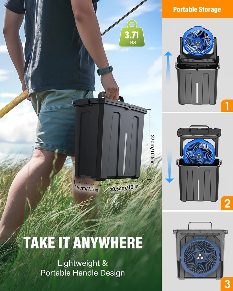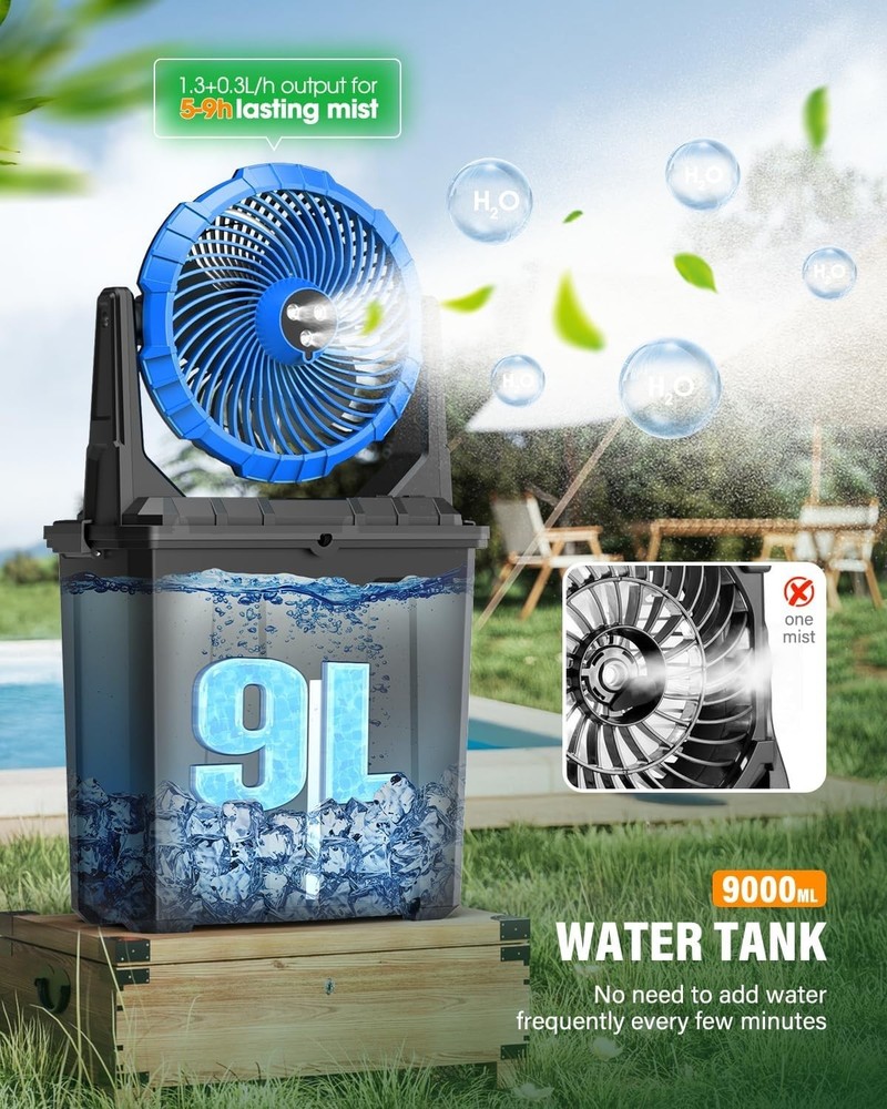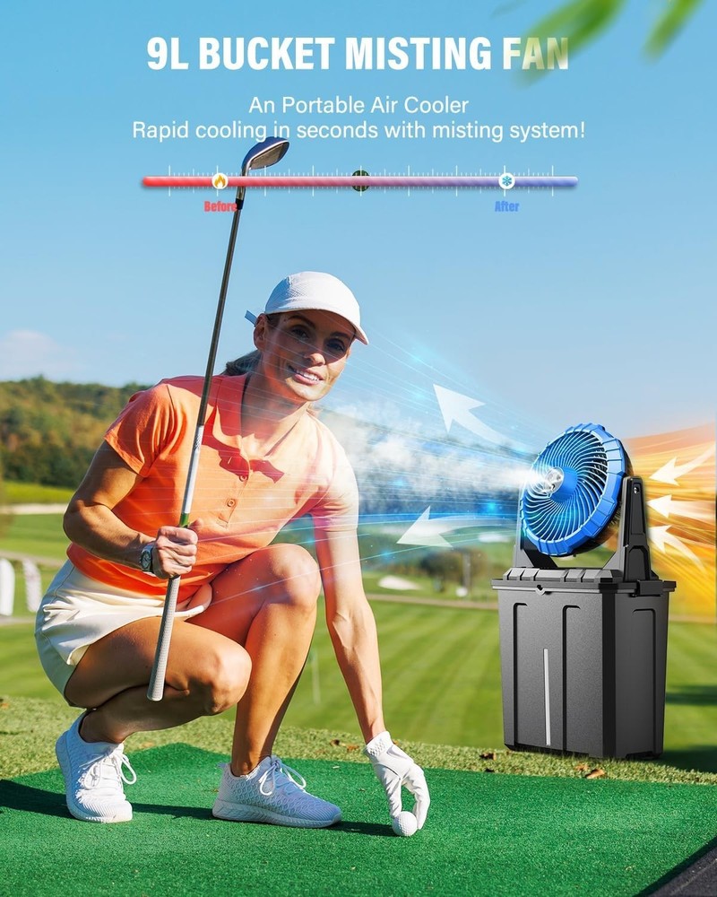 20000mAh Portable Misting Fan with 9L Bucket – Ideal for Outdoors & Camping