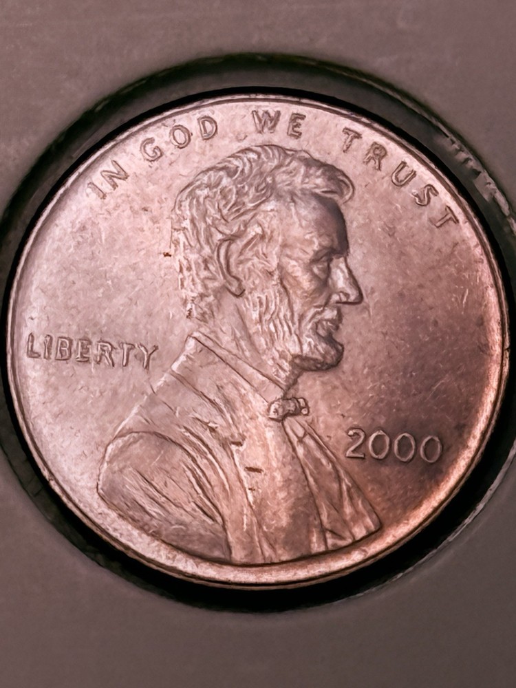 Discover a unique addition to your coin collection with the 2000-p Lincoln Memorial Penny, showcasing a striking error caused by a grease strike-through on the reverse side. This particular coin, minted in Philadelphia, features the iconic Lincoln Memorial design and presents itself in a beautiful red color, captivating the eye of both new collectors and seasoned numismatists.