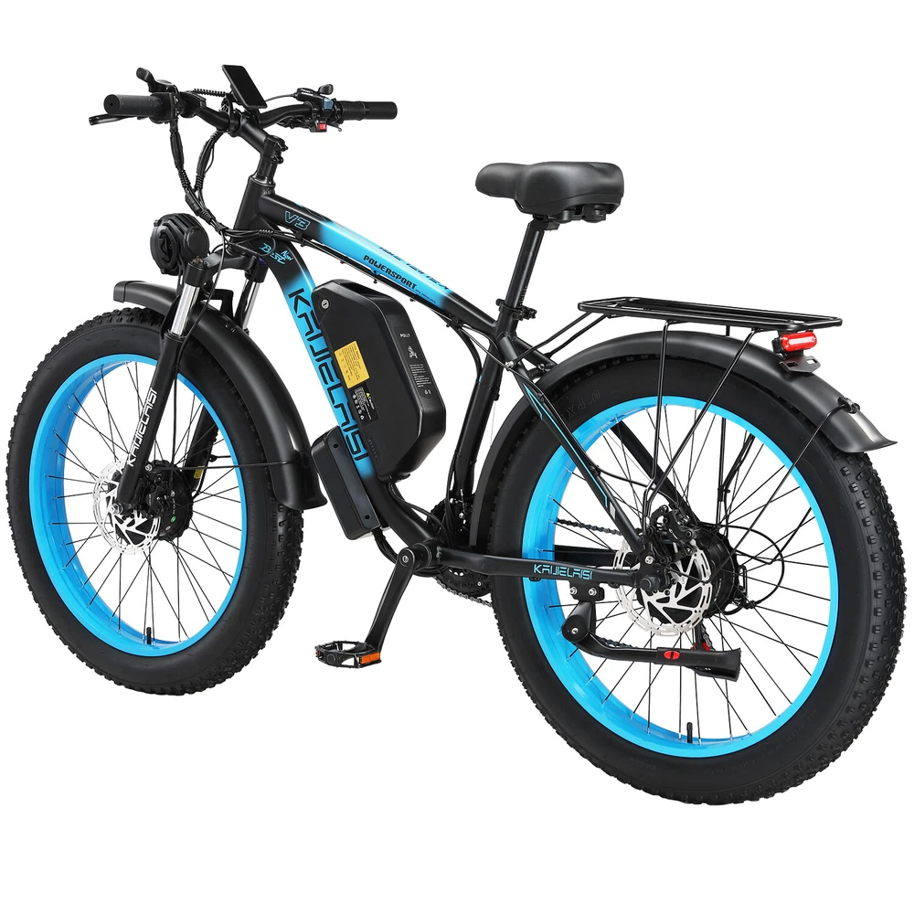 2000W Dual Motor Dirt Bike 48V/23Ah 35MPH 26" Electric Bicycle for adult KETELES About this item: * Powerful Motor E-bike: The V3 is a powerful all-wheel drive electric bike for adults. 2000W brushless motor (1000W front and rear) with Shimano 21-speed gear for an easy ride, with a top speed of about 33MPH, with a long range of more than 40 miles. Equipped with 48V, 23AH detachable lithium battery, so you can bring the battery to your home or office to recharge. Charging time: Approximately 6-8 hours, 2000 cycles of charging. * Fat Tires 26"x4.0" Ebike: Fat Tire and front suspension to ride smoothly on any terrain, including rocky roads, sandy beaches, snowy suburbs and so on. * Hydraulic Disc Brakes: The front and rear hydraulic brake system with power-off function offers an easy brake within 2 seconds, which provide more effective braking in rainy weather, heavy off-road, long downhill, high-speed riding and adverse conditions, stop the e-bike quickly and smoothly. Equipped with 21 speed gears, more accurate and stable. The lockable aluminum suspension front fork has a good shock absorption effect, which can offer you safer and comfortable riding experience. * Smart Display: Mileage 5-speed LCD display computer shows your speed per hour, total distance and remaining battery power for a better riding experience. You can then control the display of miles or kilometers as a unit of speed or mileage through the settings menu. * 5 Riding Modes: Including pedal assist mode, throttle mode, normal bike mode, cruise control mode, and walking mode. Elevate your off-road adventures with our mountain bike. Unleash the thrill of conquering diverse terrains, from rugged mountain trails to challenging off-road paths. Multiple modes are suitable for different road conditions, making your riding journey more fun. * Easy installation: 85% of the bike is pre-installed, you only need to manually install a few simple accessories. * 1 Year Warranty: We provide 1 year warranty. If you have any questions about this item please directly contact us. Specification: Bike Type E-Bike Age Range Adult Brand KAIJIELAISI Number of Speeds 21 Color Black-Blue Wheel Size 26 Inches Brake Style Disc Frame Aluminum Fork Aluminum Alloy Suspension Fork with Lockout Brake Hydraulic Brake with Power Cut-off Feature Throttle Twist Throttle on the Right side of Handlebar Display Smart LCD display that shows speed, battery status, pedal assist level, etc. Range Fully Electric Mode Range: around 40~60km Pedal Assist Mode Range: around 70~90km Voltage 48 Volts (DC) Model Name V3 Wattage 2000 watts Item Weight 38kg Maximum Weight Recommendation 200 Kilograms Warranty 1 year Suggested Users Unisex-adult Charge time 6-8 hours Warm Tips: 1.New electric bike passes road test before packing, therefore dust on the tires is inevitable. 2.Upon arrival, mark down the serial number, which locates on the middle axle tube, and register to vehicle management center. It is necessary to track your ebike while preventing loss. 3.Please be aware of the height of electric bike. Note: Our products have been certified under UL2849 safety standards. Payment Delivery details Terms of sales About us Contact us Payment We accept Credit Card, Debit Card and eCheck payments through Payoneer. Delivery details 1. Thank you very much for purchasing our products. 2. All the items double checked well packed bafore shipping. 3. Itme will be dispatchec within 2 business day(not includes the holiday and weekend) after your payment. 4. We usually use Fedex or UPs logistics to transport your package, and the delivery time would be about 5-7 business days. 5. When you have completed your payment, please leave your correct phone number and address, you could contact us by courier for any quesiton. And keep your phone open, prevent the delivery staff contacting you and causing the package to be returned. Terms of sales We guarantee 100% customer satisfaction. We check all items before sending out, if you received an broken/ defective item, please take photos and send to us immediately. We only accept those case reported within 30 days. Please keep all package material, return items must be in good condition. About us Keteles was specialized in producing bicycle, mountain bike, electric bikes, folding bikes, and other bicycle products. Our products are characterized by elegant appearance, superior quality, assorted specification, novel design, safety and reliability. With a complete set of facility, a perfect quality insurance system and an advanced testing method, we have experienced designers, engineers, management personnel and workers. We always stress on product quality and new product development. We strictly stick to tenet of "emphasizing on quality, stressing on credit, seeking for little profit and pursuing for development". We have gained a good reputation among customers at home and abroad. With our strict quality management, reliable credit, powerful strength and comprehensive marketing network, we sincerely welcome customers to cooperate with us. We would like to accompany you to create a brilliant future. Contact us Our goal is to make sure you are a happy buyer and have a pleasant shopping with us. Please leave us positive feedback and 5 stars rate if you are happy with our item and service. Please contact us before leaving any 1 or 2 ratings, neutral or negative feedback or open any dispute. We understand the concerns and frustrations you might have, and will do our endeavor to resolve the issues. Please give us the opportunity to resolve any problem. We thank you for your effort to make this sale and purchase experience a happy one! If you have any question about us, feel free to contact us, Please allow 24 hours for a message reply! We are highly appreciated your Positive feedback, we will try our best to resolve your problem.