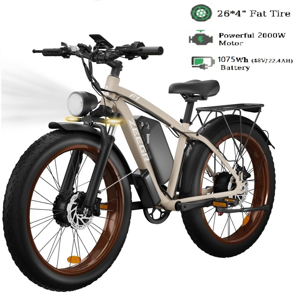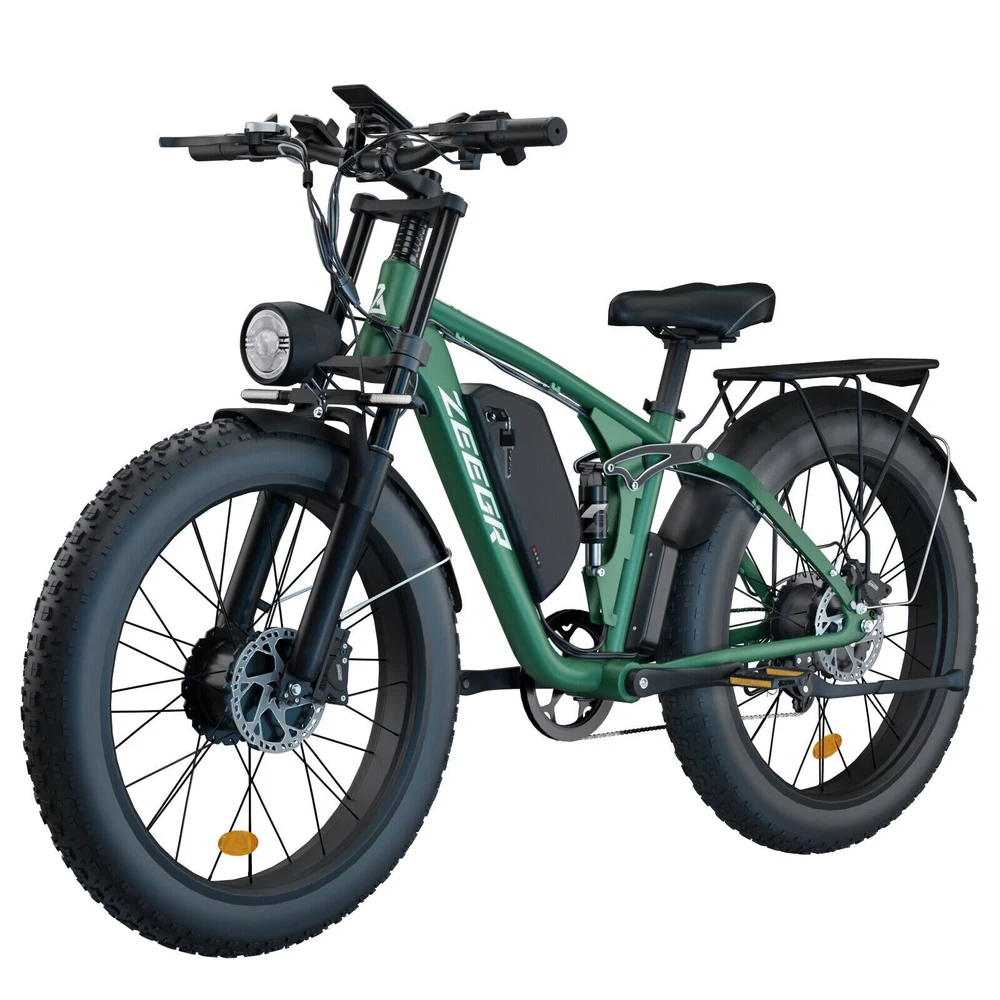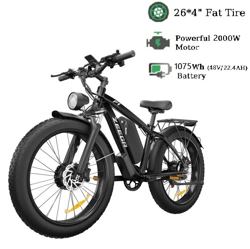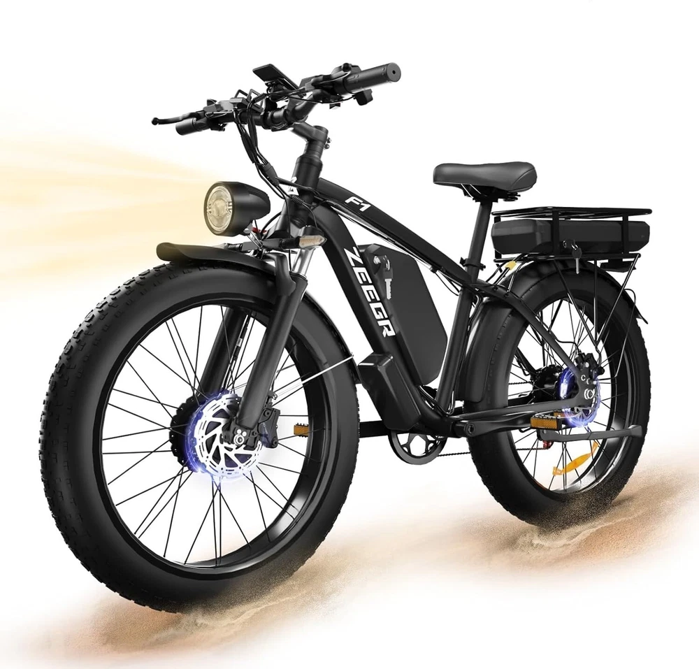 Charging Time: 5-8 hours Fork: S1 Dual Suspension F1 Suspension Fork Maximum Speed: 35 mph Material: Aluminum Alloy Number of Speeds: Shimano 7 Speed MPN: F1/S1 4 Modes: Pure Electric, Pedal-assist (5 Levels), Cruise Mode, Normal Bike Model: S1 F1 Battery: 48V / 52V 22.4AH Lithium-ion Battery Features: Adjustable Seat,Pedal Assist,Rear Bike Rack,Fenders,Fat tires Frame: 6061 Aluminum Alloy Shifter Style: Thumb Shifter Country/Region of Manufacture: China Package Size: 58.3"*12.6"*31.5" (148*32*80CM) Item Weight: 75 lbs (34 kg) Model Year: 2025 Bike Size: 76.0"*28.7"*44.5" (193*73*113CM) Max Load: 330 lbs (150 kg) Manufacturer Warranty: 1 Year Frame Size: Large Maximum Range: 40-60 miles (65-95km) in PAS Mode Brake Type: Disc Brake - Hydraulic Throttle: Twist Throttle Display: Multifunctional Color LCD Display Suspension Type: S1 Dual Suspension F1 Suspension Fork Wheel Size: 26 in Department: Unisex Adults Package Weight: 97 lbs (44 kg) Bike Type: E-Mountain Bike Gear Change Mechanism: Derailleur Gears Handlebar Type: Cruiser Bar Tire Type: Fat Tires 26" * 4.0" Brand: Zeegr Frame Number: S1 F1 Motor Type: Dual Motors
