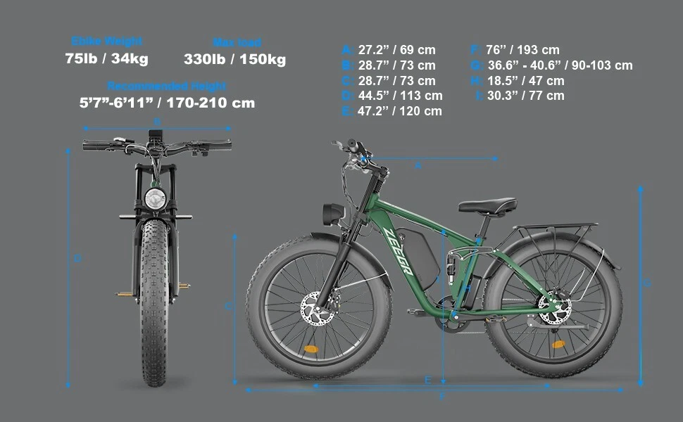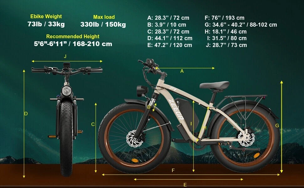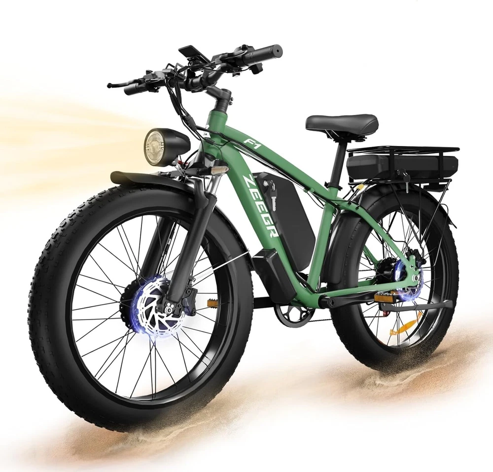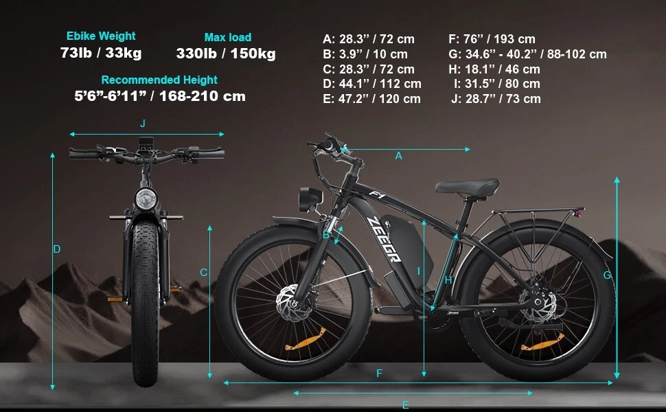 Charging Time: 5-8 hours Fork: S1 Dual Suspension F1 Suspension Fork Maximum Speed: 35 mph Material: Aluminum Alloy Number of Speeds: Shimano 7 Speed MPN: F1/S1 4 Modes: Pure Electric, Pedal-assist (5 Levels), Cruise Mode, Normal Bike Model: S1 F1 Battery: 48V / 52V 22.4AH Lithium-ion Battery Features: Adjustable Seat,Pedal Assist,Rear Bike Rack,Fenders,Fat tires Frame: 6061 Aluminum Alloy Shifter Style: Thumb Shifter Country/Region of Manufacture: China Package Size: 58.3"*12.6"*31.5" (148*32*80CM) Item Weight: 75 lbs (34 kg) Model Year: 2025 Bike Size: 76.0"*28.7"*44.5" (193*73*113CM) Max Load: 330 lbs (150 kg) Manufacturer Warranty: 1 Year Frame Size: Large Maximum Range: 40-60 miles (65-95km) in PAS Mode Brake Type: Disc Brake - Hydraulic Throttle: Twist Throttle Display: Multifunctional Color LCD Display Suspension Type: S1 Dual Suspension F1 Suspension Fork Wheel Size: 26 in Department: Unisex Adults Package Weight: 97 lbs (44 kg) Bike Type: E-Mountain Bike Gear Change Mechanism: Derailleur Gears Handlebar Type: Cruiser Bar Tire Type: Fat Tires 26" * 4.0" Brand: Zeegr Frame Number: S1 F1 Motor Type: Dual Motors