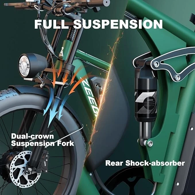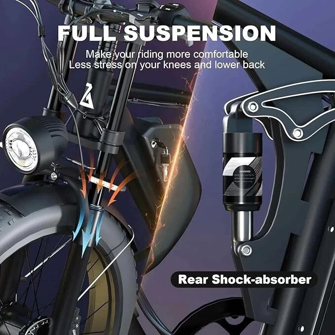2000W Dual Motor 48V/52V Ebike 22.4Ah 35mph Full Suspension All Terrain for Adults