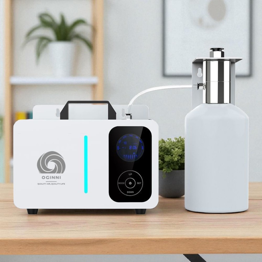 Year Manufactured: 2025 Product Line: HVAC & Stand Alone Scent: Does not come with oil Noise Level: 40 dB Occasion: All Occasions Department: Adults Handmade: No Pattern: Atomizer Type: Electric Diffuser & Atomizer Style: Modern Manufacturer: Oginni Features: Deodorizer, Diffuser, Eco Friendly, Odor Eliminator, Pet Safe, Residue Free, Wi-Fi, Bluetooth, Large plastic cannister, HVAC connectible, Large Coverage, Cold Air Diffusion, Waterless, Digital Timer, Automatic settings Smart Home Protocol: WIFI & Bluetooth Power Source: Wall Plug-In Material: Metal Item Width: 10 in Number in Pack: 1 Room: Living Room, Office, Lounge, Hotel Lobby Size: Large Item Length: 6.5 Volume: 2000 ml Model: GAL-8000H Form: Atomizer Smart Home Compatibility: Scent Tech Color: White Installation Area: HVAC & Stand-alone Brand: OGINNI Item Height: 7.87 Intended Use: Aromatherapy