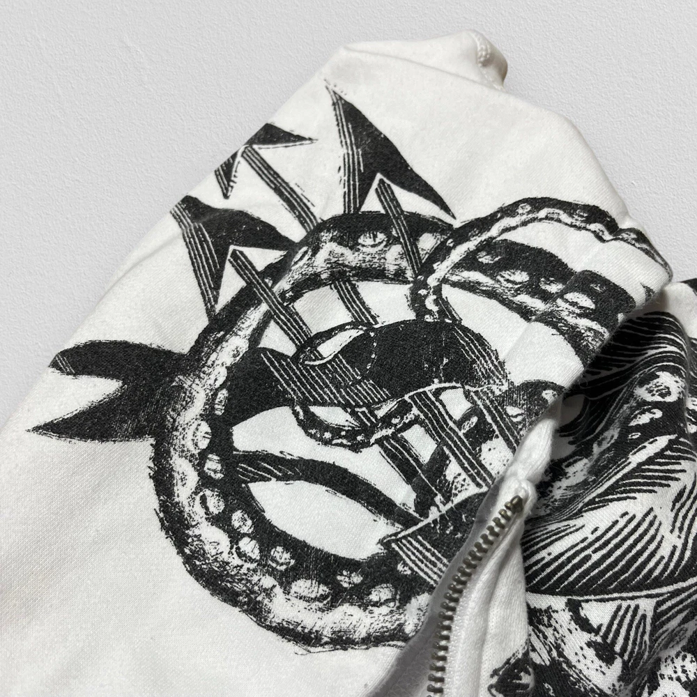 2000’s Guess Snake Graphic Print Hoodie Full Zip Mens Size Large White Y2K