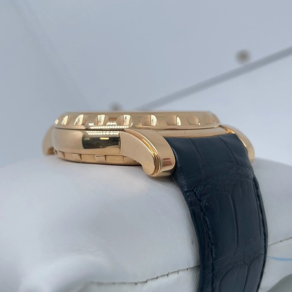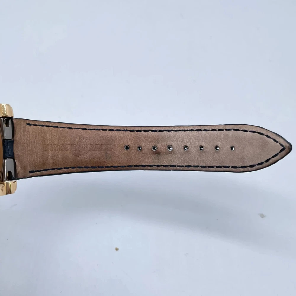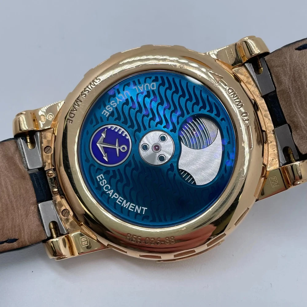 Good pre-owned condition. Original box and papers are not included. 2000's Ulysse Nardin 026-88 Freak 44.5mm 18K Yellow Gold Hand Wound Mens Watch Description Good pre-owned condition. Original box and papers are not included. Ships from Address 608 5th Ave, STE 408 - New York New York, 10020 Phone 16465368182 Condition Excellent Good Fair Poor Good pre-owned condition. Clean dial and hands. Calibrated timekeeping, flawless complications. Original box and papers are not included. Highlights Weight 153g Case Size 44.5 mm Wrist Fit Adjustable up to 8 inches Box No Papers No SKU 044179 General Info Brand Ulysse Nardin Type Wristwatch Department Men Model Number 026-88 Country/Region of Manufacture Switzerland Style Luxury Model Ulysse Nardin Freak Vintage No Features/Other Details Year Manufactured 2000-2009 Customized No Handedness Right With Original Packaging No With Service Records No With Booklet No With Papers No SKU 044179 Features Swiss Made, Swiss Movement, Water-Resistant, Fixed Bezel, Sapphire Crystal Band/Bracelet Details Band Color Navy Blue Band Material Leather Max Wrist Size Adjustable up to 8 inches Closure Butterfly Clasp Band Type Two-Piece Strap Band Width 18 mm Lug Width 22 mm Wrist Fit Adjustable up to 8 inches Case Details Case Material Yellow Gold Case Color Gold Water Resistance 100 m (10 ATM) Watch Shape Round Caseback Exhibition Case Finish Polished Case Size 44.5 mm Case Thickness 11 mm Bezel Details Bezel Type Fixed Bezel Color Gold Display Dial Color Blue Dial Pattern Sunburst Display Analog Indices Arabic Numerals Movement Movement Manual Number of Jewels 28 Jewels Shipping Warranty Return Policy FAQ All in stock items are shipped within one business day. Same day shipping is available upon request. Due to insurance purposes, all packages are shipped with a tracking number and signature is required. We do not ship to PO Boxes. Import duties, taxes, and charges are not included in the item price or shipping cost. These charges are the buyer's responsibility. Please check with your country's customs office to determine what these additional costs will be, prior to bidding or buying. All watches sold by Luxxwatches are covered with in-house warranty for a period of Watches that lose time, gain time, do not change day or date, or have any other signs of not working properly will be serviced under our warranty program.The Luxxwatches warranty does not cover any damage resulting from water damage or physical harm. Additionally, the warranty does not cover polish for the watch case, any damage to crystal, band, bezel, straps, screws, crown/stem, finishes, clasps/buckles which are a result of normal wear and tear. Any lost parts of the watch, including stones, is not covered with the warranty. Any damage incurred as a result of exceeding the limitations of the watch manufacturer’s water resistance guidelines will not be covered with the warranty. Any third-party repairs, outside modifications or customizations will void the warranty. All the items purchased from Luxxwatches are covered with a 30-day money back guarantee. If you are not fully satisfied with your purchase, you may exchange or return your item for a refund within 30 days of first receiving your item. Item must be in the same condition as it was received, and include all original booklets, box & packaging. Any signs of wear, water damage, or altering will result in refusal of your return.Special order items, such as items we do not have in our warehouse and are specially ordered from our distributor or items that have been customized, are non-returnable.We offer free returns on eligible items, please contact us for the return shipping label. How to start an automatic watch? It’s very important to wind an automatic watch properly, prior to its use. The initial wind provided may only last a short while, making the watch appear defective once it stops ticking. To ensure your watch functions to the fullest of its capabilities, wait for it to stop and then wind the watch counter-clockwise 15-20 times. Next, push the crown back, screwing it down to preserve the water-resistance. *Be mindful that excessively winding the watch may cause damages to the movement, so don’t overdo it. Unlike self-winding watches, the crown doesn't need to be wound on quartz models. If it still isn’t ticking, simply bring it by for a battery replacement. Why the watch is running slow? A watch can lose time for various reasons including, but not limited to a dying battery, which will cause the second-hand to begin jumping across several seconds at once instead of passing each individually, magnetization, causing tension between small parts within the movement and natural friction from the watch being worn. If the watch is a mechanical model (Automatic or Manual-wind) this can also be a sign that the watch needs to be overhauled. How to use a chronograph? Operating a Chronograph requires using the pushers on the side of the case. The top pusher is used to start and stop the chronograph hand while the one at the bottom is used to reset it. Once the top pusher is pressed, the hand will run continuously, which you can track using the accompanying sub-dial. In order to reset the chronograph, it has to be stopped first. Otherwise the button will do nothing when pressed. How to set the date & time? Whether you have a screw or push-down crown, setting the date and time is simple. If its a screw-down, unscrew it by turning it downward, counterclockwise prior to following these steps. Pull out the crown to the first integer to operate the date alone, allowing the time to continue ticking. Pulling the crown out farther, you’re then allowed to adjust the time, which also shifts the date after each 24-hour cycle. Once you have your watch set, simply push the crown back in all the way and screw it fully closed to preserve its water-resistance. *Do not change the date when the watch is between 10PM-2AM because the movement can be damaged. H
