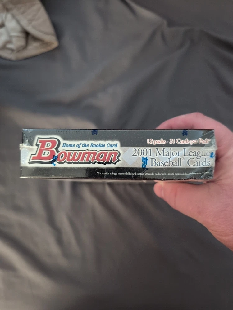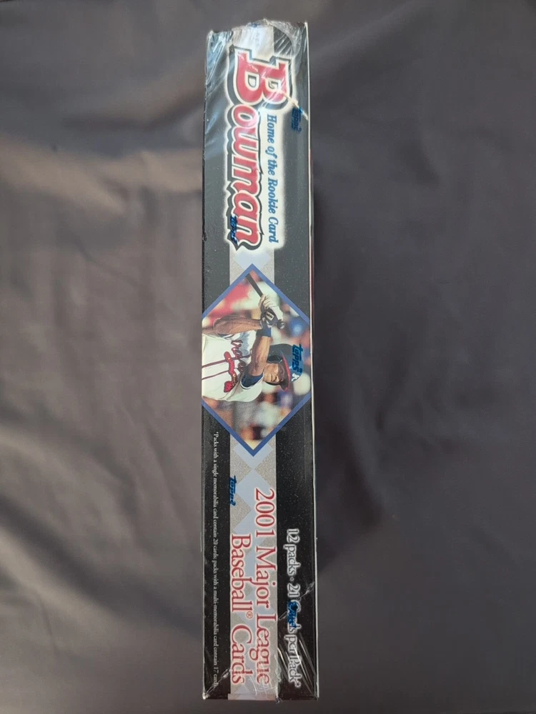 The product is a 2001 Bowman Baseball Hobby Box containing 240 cards from the Major League (MLB). It includes cards of players like Alex Rodriguez, Miguel Cabrera, Albert Pujols, and Derek Jeter. The box is autographed and may contain an autographed rookie card of Albert Pujols. It is factory sealed and features an Albert Pujols rookie and Miguel Cabrera error cards. The set is vintage and manufactured in the United States.