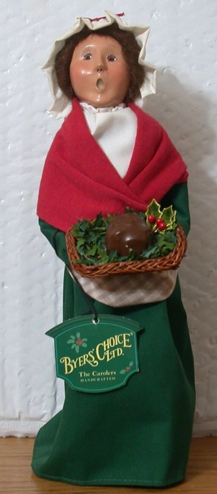2001 Byers Choice Caroler Mrs Cratchit w Plum Pudding & Original Hang Tag Signed and dated on base. Please see all photos for condition. From a smoke and pet free home. I do combine shipping.