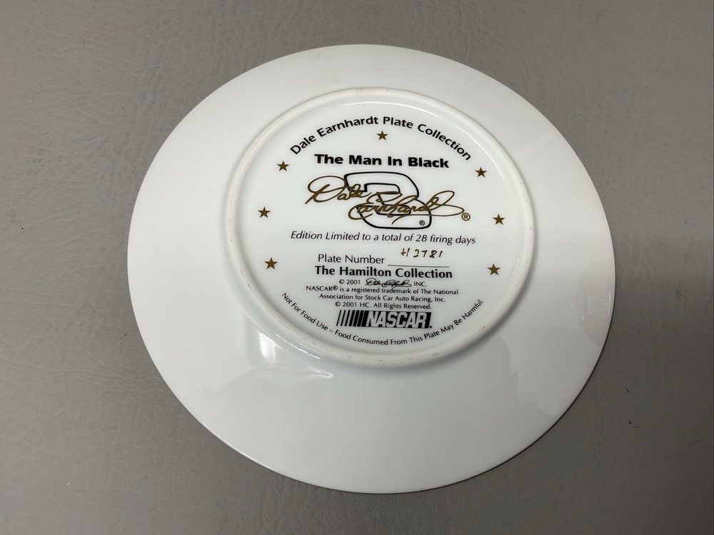 The 2001 Dale Earnhardt #3 The Man In Black Porcelain Plate is a collector's item commemorating the iconic Nascar driver. This decorative plate, featuring a multicolor design and hand-numbered for authenticity, is part of The Hamilton Collection's Dale Earnhardt Hamilton collection. Perfect for all occasions, this round porcelain plate showcases the American racing legend in a stylish and meaningful way, making it a must-have for any fan or collector of Nascar and Dale Earnhardt memorabilia.