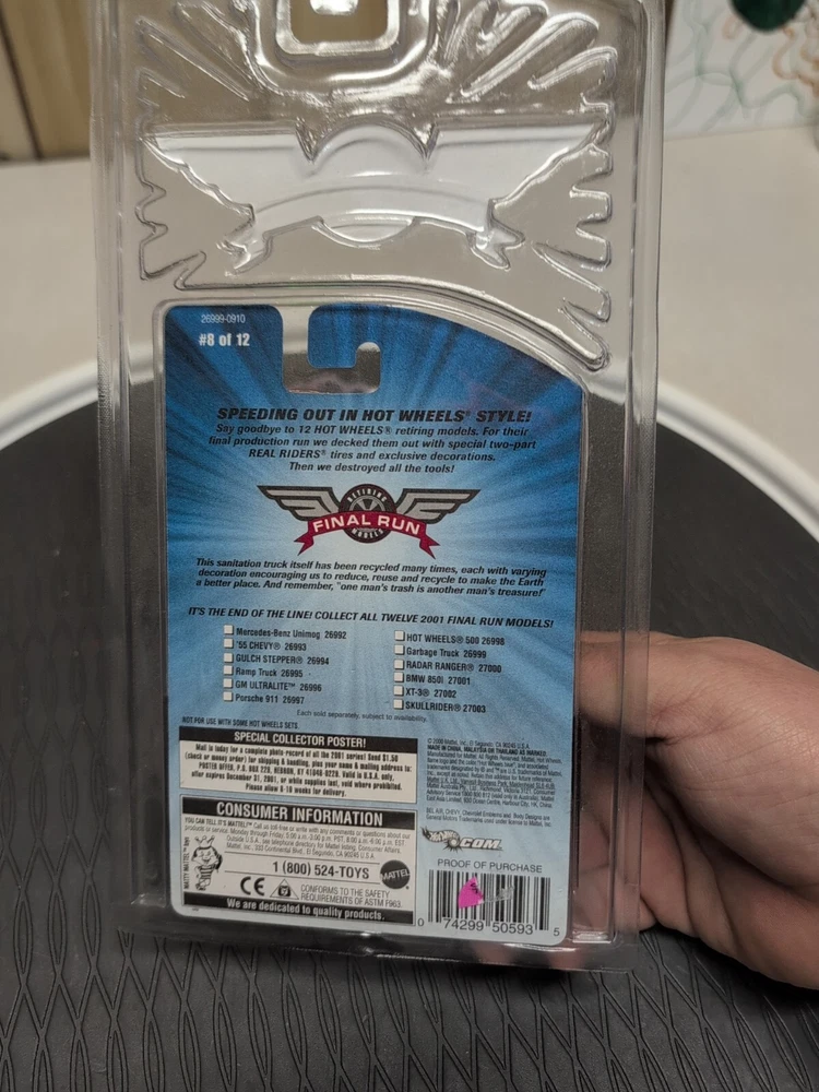 Vehicle Type:Garbage TruckFeatures:Unopened BoxUPC:074299505935MPN:Does Not ApplySeries:Hot Wheels Final Rungtin13:074299505935Vehicle Make:Hot WheelsGender:Boys & GirlsTheme:Final RunYear of Manufacture:2001Recommended Age Range:3+Brand:Hot WheelsModel:Garbage TruckColor:WhiteMaterial:DiecastScale:1:64