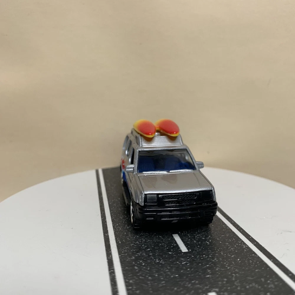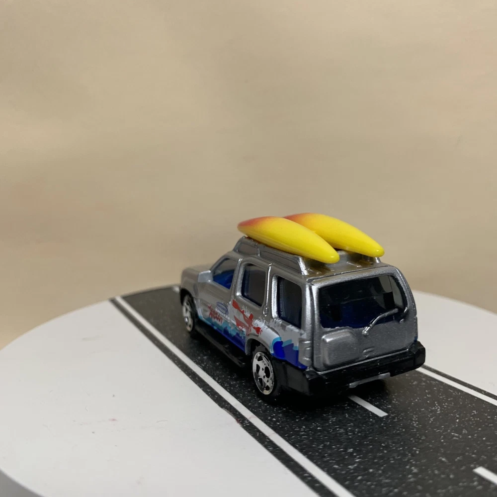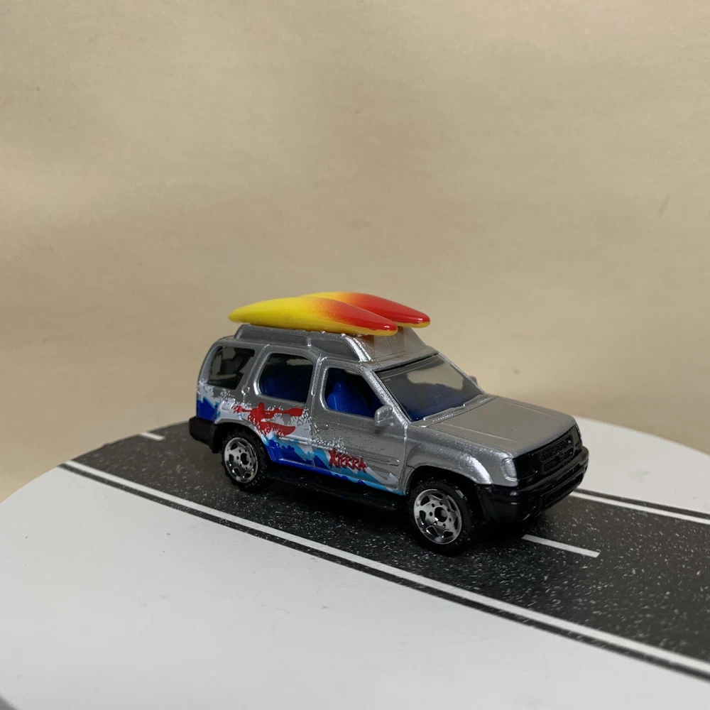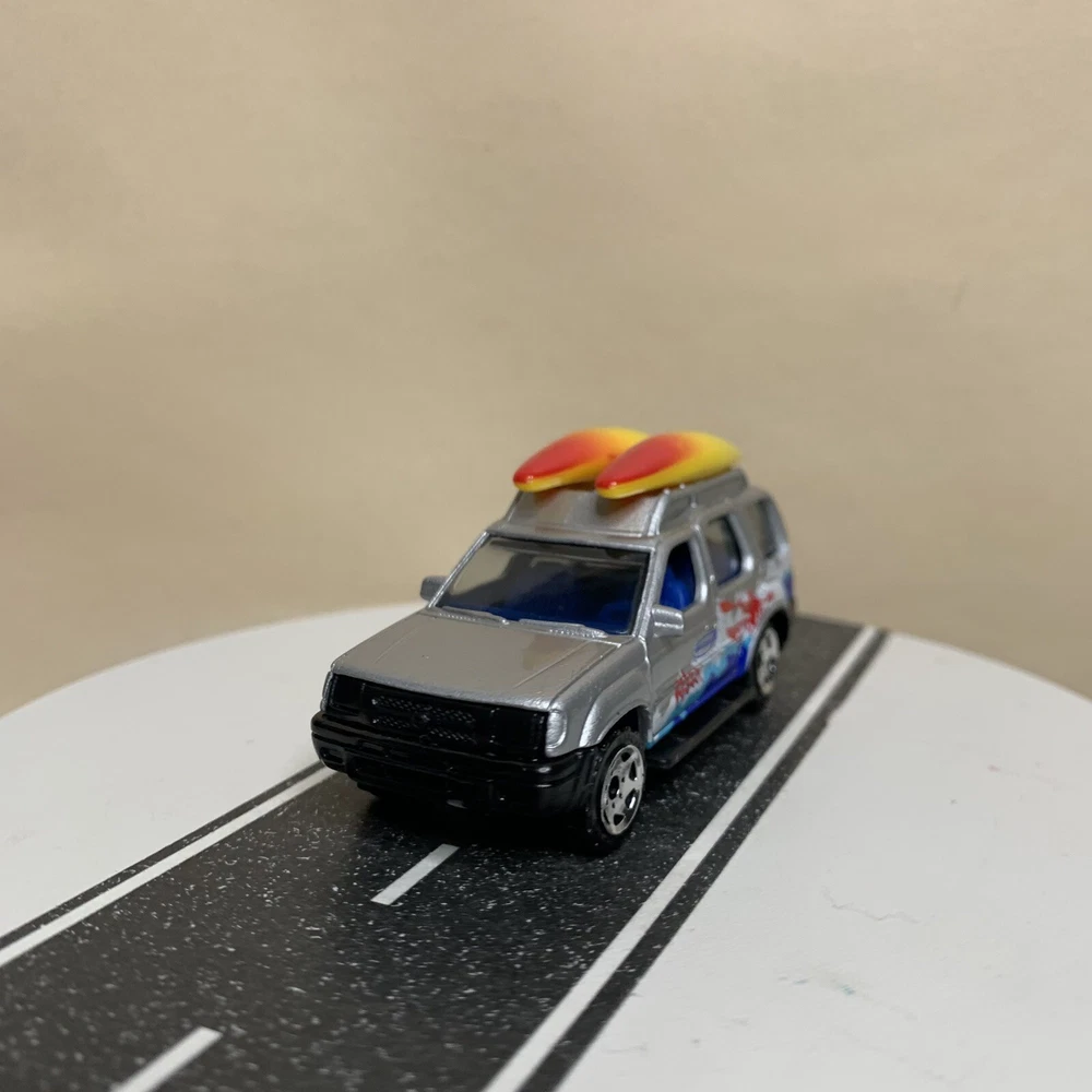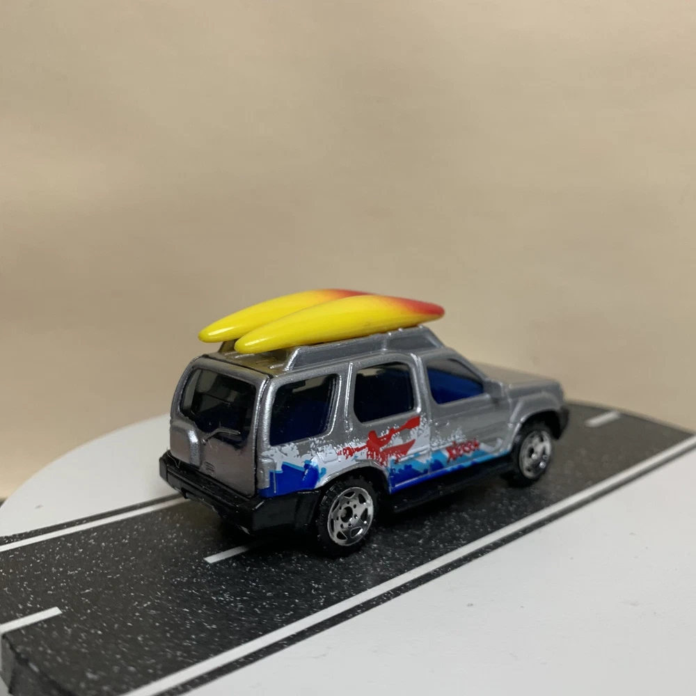 2001 Matchbox #32 Nissan Xterra SUV Silver w/Surfboards & Surfing Graphics NM