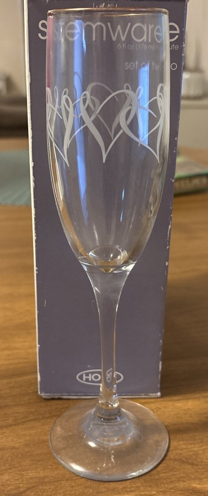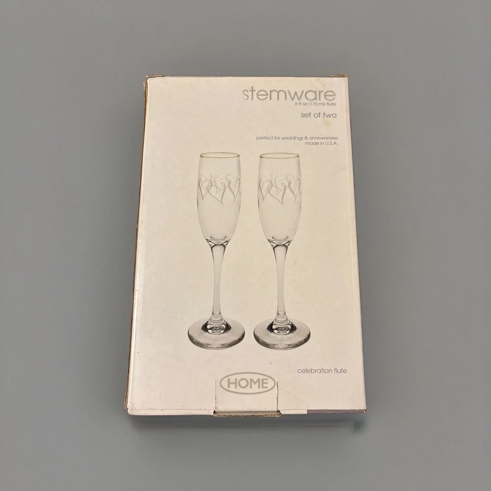 Elevate your toasting experience with these elegant 2001 Target Home Celebration Flutes. Crafted from clear, lead-free glass, these flutes feature a charming etched hearts pattern that adds a touch of romance to any occasion. The two-piece set includes both flutes and is perfect for sharing a celebratory moment with someone special. Each flute has a capacity of 6 fluid ounces and is designed for adult use. The set is made in the United States and is suitable for all occasions. Whether you're celebrating a special event or simply enjoying a romantic dinner, these champagne flutes are the perfect addition to your drinkware collection.
