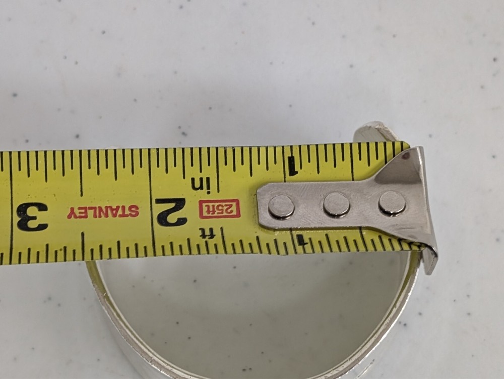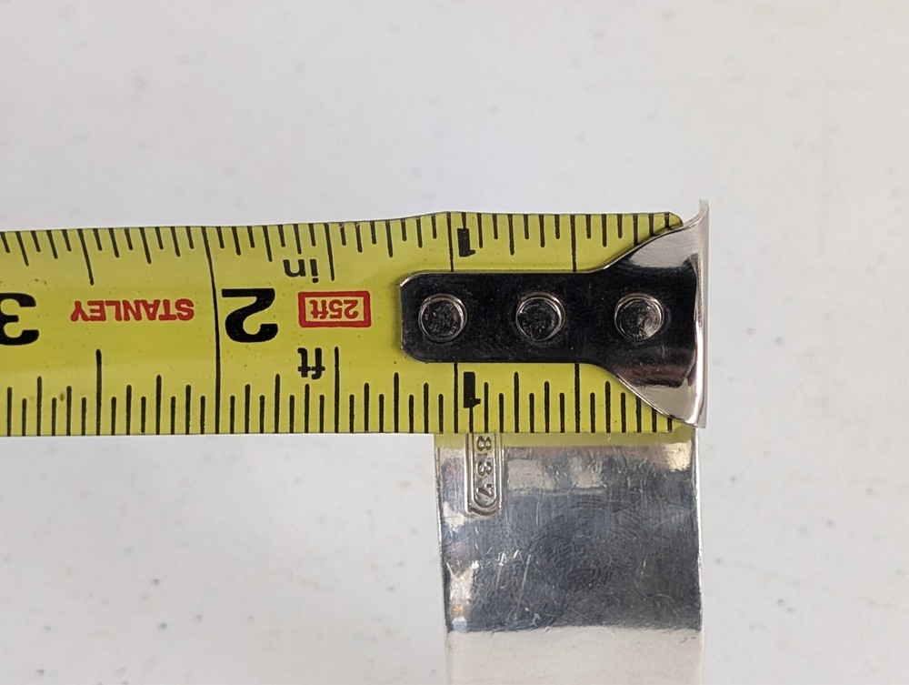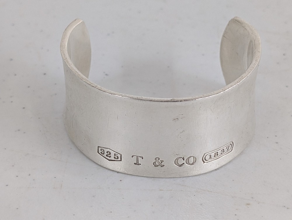 The 2001 Tiffany & Co. 1837 Sterling Silver Wide Cuff Bracelet is a luxurious and elegant piece of fine jewelry from the renowned brand Tiffany & Co. This cuff bracelet is made of 925 sterling silver, showcasing the brand's signature quality and craftsmanship. The wide cuff design adds a modern touch to the classic Tiffany 1837 collection, making it a stylish accessory for any outfit or occasion.
