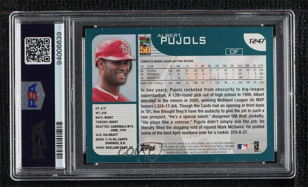 2001 Topps Traded Albert Pujols RC Rookie #T247 SGC 9 MINT - BEAUTIFUL . Condition is Used. Shipped with USPS Ground Advantage.