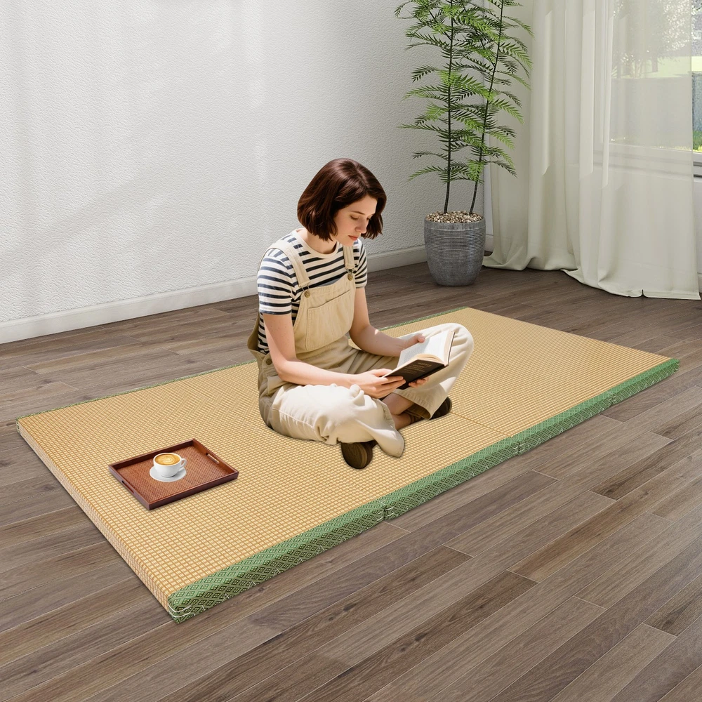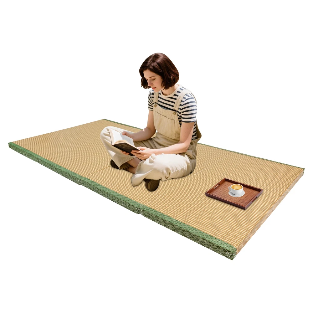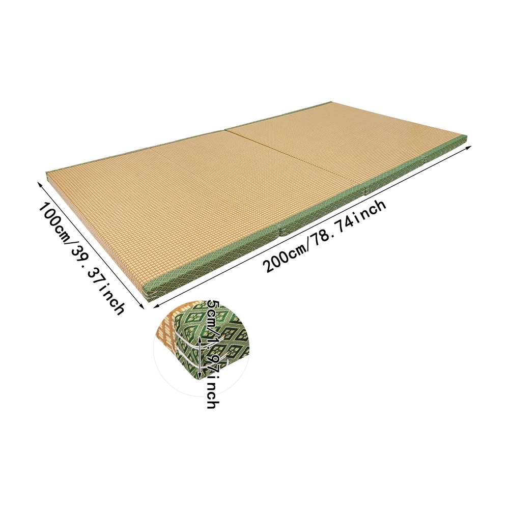 200*100*5cm Tatami Mattress, Foldable Floor Mattress, Meditation Mat Green Brown