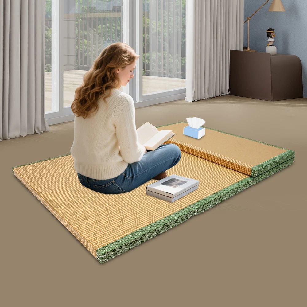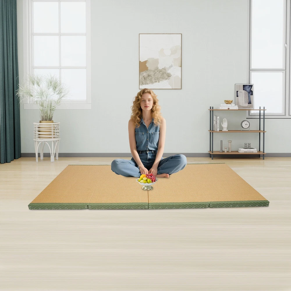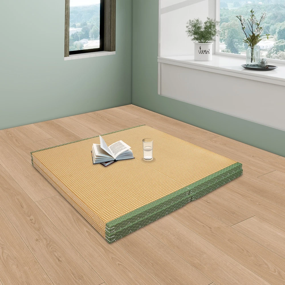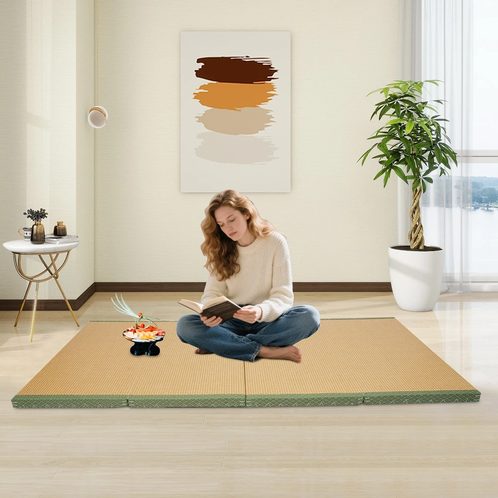 200*100*5cm Tatami Mattress, Foldable Floor Mattress, Meditation Mat Green Brown