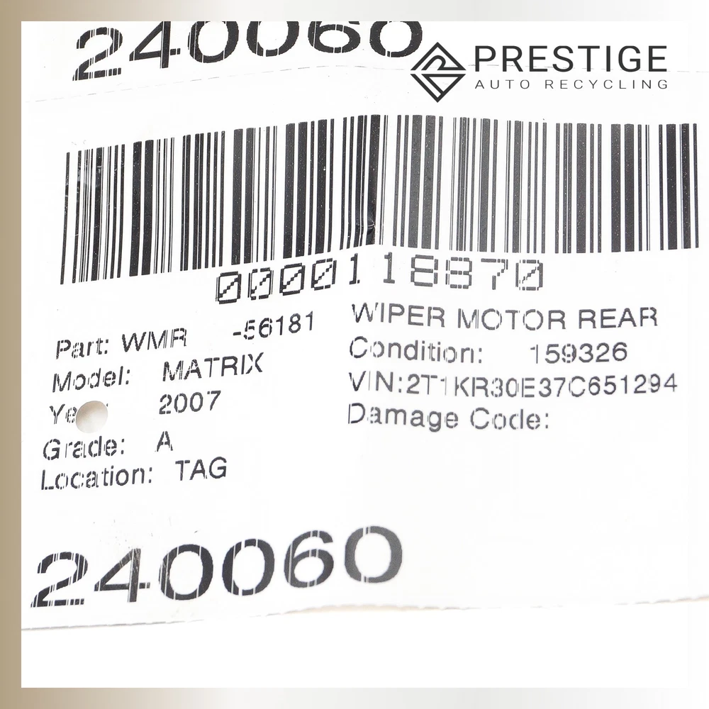 Prestige Auto Parts - Product Page Local pick-up available at 3400 Sunrise Blvd, Rancho Cordova, CA 95742 2001-2008 TOYOTA MATRIX RAV4 Windshield Wiper Arm Rear 85241-42040 Not sure if the part fits? Send us your VIN, and we'll verify compatibility for you! Item Condition The item is in good condition, fully operational, and demonstrates normal signs of use. Please note that, as a used part, it may show light scuffs, scratches, or other minor imperfections, as shown in the photos provided. WHEN YOU BUY FROM US YOU AGREE TO OUR TERMS AND CONDITIONS: It is the buyer's responsibility to carefully inspect all of the photos for details and/or request more photos if necessary, what you see in photos is exactly what you will receive. Before purchase, the buyer MUST verify that the item will fit their vehicle. PLEASE NOTE: Make sure to verify fitment independently with your local dealer, information in the “compatibility” section is generated by eBay Motors, not from us. IF YOU HAVE ANY QUESTIONS, CONTACT US VIA EBAY MESSAGING BEFORE PURCHASING. Payment We accept PayPal, VISA, MasterCard, Discover, and American Express. Sales tax collected by eBay where applicable. For local orders, pay on pickup available. Shipping Most items ship within 24 hours of payment; items paid for on the weekend or holidays ship on the following business day. We ship by FedEx, UPS, USPS, and regional freight/LTL carriers, whichever option is most affordable and/or faster. Shipping prices for ground apply only to the continental United States. Anywhere else is considered international shipping and will have an international shipping rate. Any international customs fees are the responsibility of the buyer. Any free shipping we offer is for the continental United States only. If you are from Hawaii, Alaska, or a Territory of the United States, please request a shipping total before bidding and we will do our best to keep the cost low. For orders placed outside of the United States, we ship ONLY through the eBay Global Shipping Program. If you are outside of the US, use the eBay international shipping tool above to receive a price for shipping costs. Local pickup and delivery options also available, please contact us for arrangements. PLEASE NOTE: Oversized items like engines, transmissions, bumpers, doors, hoods, trunk lids, fenders and other similar items will be shipped via Freight Shipping and MUST be shipped to a business address with a dock or forklift access; otherwise, liftgate and/or residential delivery fees may apply. YOU MUST CONTACT US FIRST FOR A QUOTE BEFORE PURCHASING SAID ITEMS. Warranty and Returns All returns must be made within 30 days of item being received by the customer only if the item is non-functional or if it differs substantially from the description. Buyer is fully responsible for shipping cost of the return. We are not liable to pay for any labor fees associated with the installation or removal of any parts sold by us. All electronics are tested before removed from vehicle. IF NOT FUNCTIONAL, WE WILL NOT SELL. If the item is defected we will state accordingly and is sold for parts only. If you have any questions about the part you’re bidding on, PLEASE ASK QUESTIONS PRIOR TO BIDDING. 90 DAY WARRANTIES are available. Contact Us If you have questions about any part, please contact us BEFORE purchasing via eBay messaging. HOW DID WE DO? We are a small, family owned business dependent on our valuable customers. Once you have received your item in satisfactory condition, would you be so kind as to leave us feedback? If there is a concern that would cause you to want to leave negative feedback, please contact us first and we will do our best to resolve the issue. Thank you and God bless! © 2025 Prestige Auto Recycling. All rights reserved.