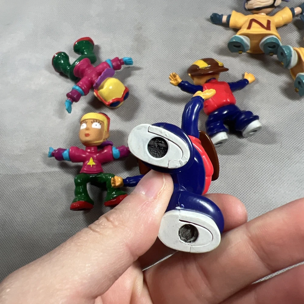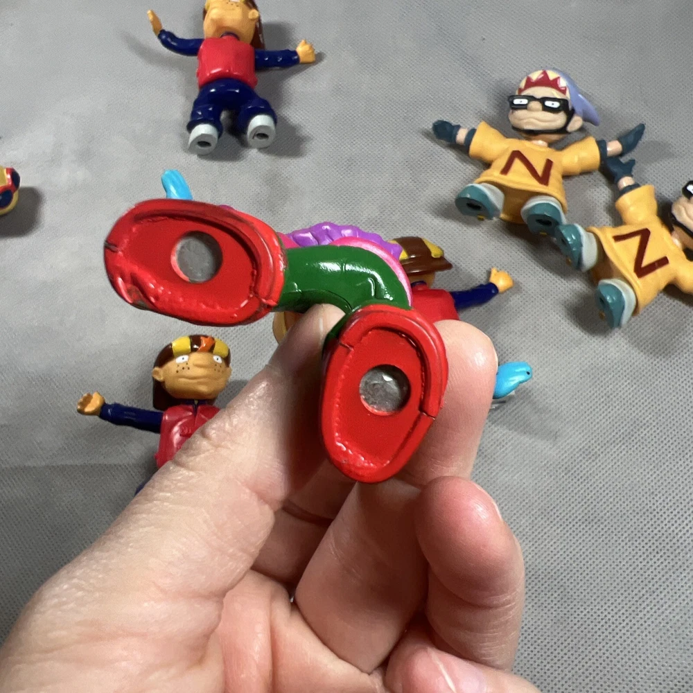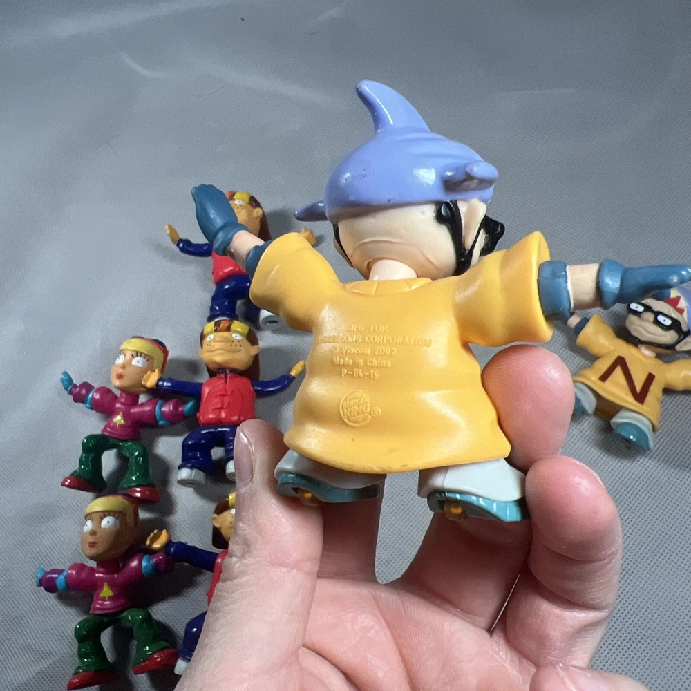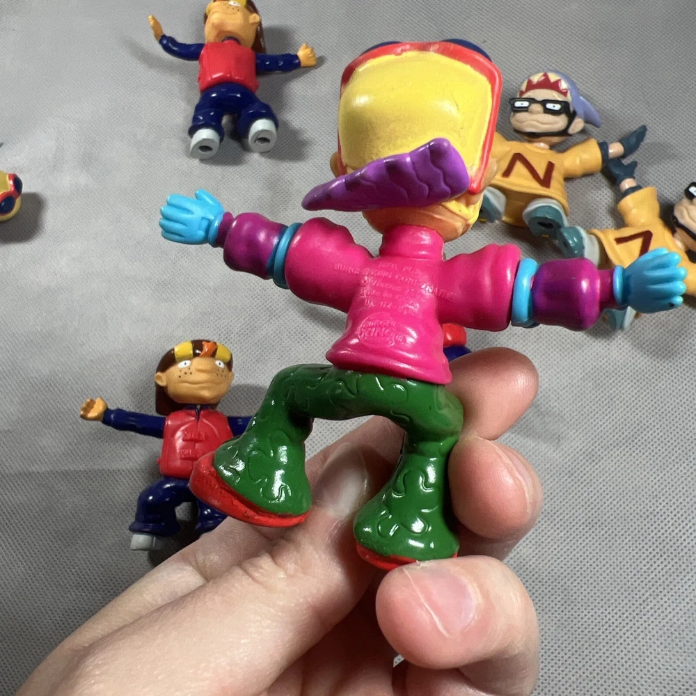 This lot of 7 loose toy figures from Burger King's Rocket Power collection is a must-have for any fast food restaurant memorabilia collector. The figures, which feature the iconic Rocket Power mascot, are a great addition to any display case or collection. You are buying all 7! Some do have worn down magnets on the bottom of the feet, please check lot all the pictures above! Thanks for looking!
