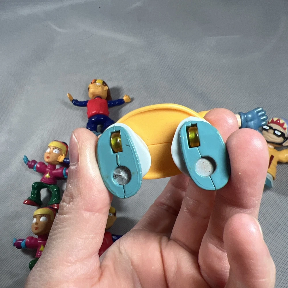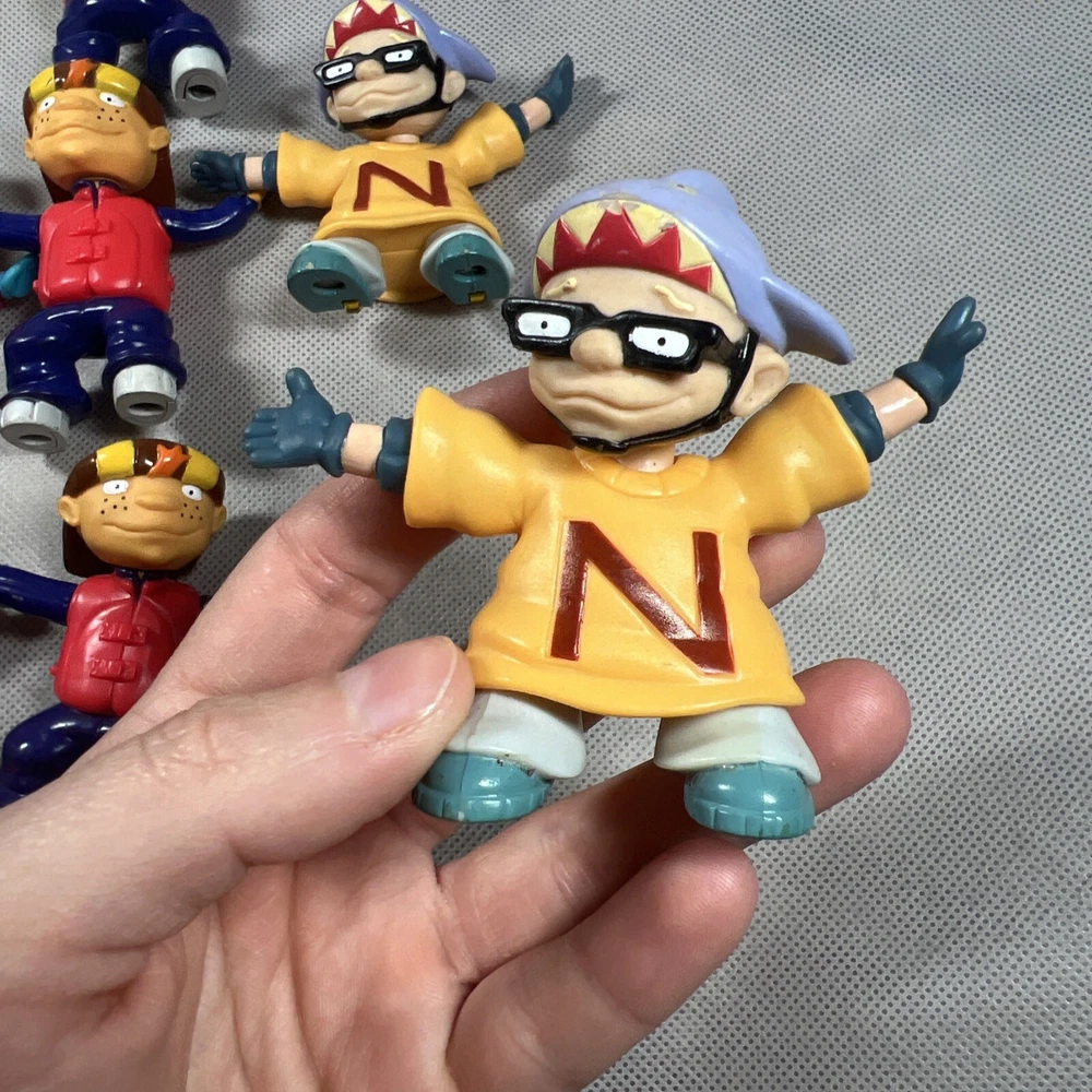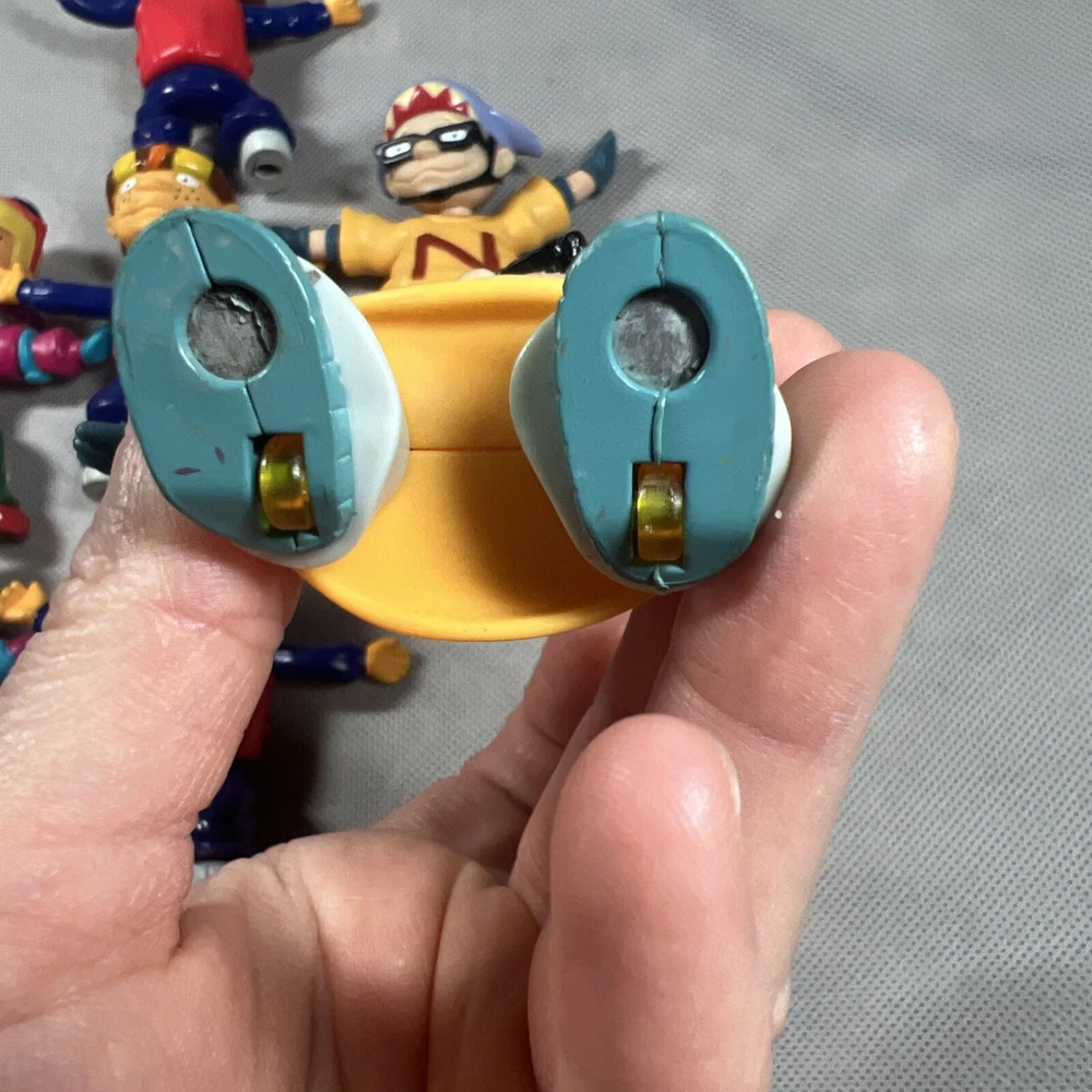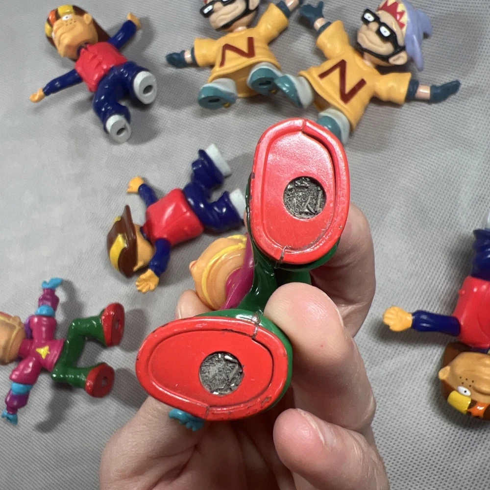 This lot of 7 loose toy figures from Burger King's Rocket Power collection is a must-have for any fast food restaurant memorabilia collector. The figures, which feature the iconic Rocket Power mascot, are a great addition to any display case or collection. You are buying all 7! Some do have worn down magnets on the bottom of the feet, please check lot all the pictures above! Thanks for looking!