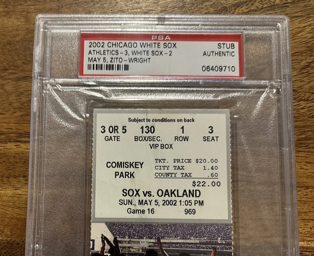 This PSA ticket stub is a rare piece of baseball history. It features the matchup between the Chicago White Sox and the Oakland Athletics on May 5, 2002, with David Justice hitting a home run. The ticket is authentic and vintage, making it a must-have for any sports memorabilia collector. The grade of this ticket is perfect, and it is an original, not a reproduction. This item is a great addition to any collection, especially for fans of the Chicago White Sox and the Oakland Athletics. Don't miss out on the chance to own a piece of baseball history.