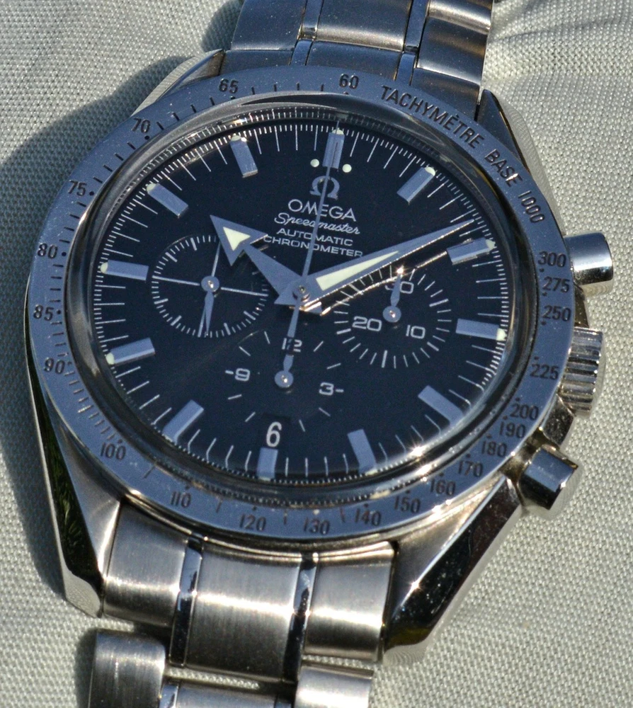 Condizione 1 (ottimo - Orologio con scatola e documenti originali i) - Omega Speedmaster OMEGA Speedmaster Broad Arrow 2002, cassa in acciaio inossidabile diametro 42,5mm., completamente originale e perfettamente mantenuto . Movimento automatico calibro 3303 n. 78008532, perfettamente funzionante con meccanismo ruota a colonna. Con data a ore 6, lancetta dei secondi del tempo a ore 9, contatore ore 6 delle ore ed a ore 3 dei minuti. Il movimento è ufficialmente certificato cronometro COSC, Finitura rodiata. Motivo "Côtes de Genève", riserva di carica: 55 ore . Finitura rodio degli indici e del logo in rilievo e delle lancette. Il vetro zaffiro è trattato x antiriflesso. Il bracciale acciaio è completo di tutte le sue maglie, quindi adatto anche a polsi di grandi dimensioni Garantisco la massima serietà e veridicità dell’oggetto. Vi do il chronograph con il suo cofanetto in mogano originale Omega e tutti i suoi documenti originali. La referenza all’interno del fondello è 178.0022. L'orologio è stato registrato da un professionista de settore in Gennaio 2026, visto il perfetto funzionamento, fornirò personale garanzia scritta di corretto funzionamento valevole per mesi 24. Garantisco la massima serietà e veridicità dell’oggetto. Riepilogo caratteristiche Genere: Orologio da uomo/Unisex Carica: Automatico colore del Quadrante: Nero Materiale della cassa: Acciaio Materiale cinturino: Acciaio Anno di produzione: 2002 Colore cinturino: Acciaio Chiusura: Déployante coperto Materiale chiusura: Acciaio Larghezza ansa (mm): 20 Larghezza fibbia (mm): 20 Cassa Diametro (mm): 42 Altezza (mm): Vetro: Vetro zaffiro Numeri sul quadrante Materiale lunetta: Acciaio Calibro Calibro/Meccanismo: 3303 Calibro di base: Numero delle pietre: Oscillazione: Funzioni: Cronografo, Data, Tachimetro . Altro: Piccoli secondi, Cronometro, Lancette luminescenti, Impostazione rapida, Originale/pezzi originali, Indici luminescenti . Segni cassa appena visibili Segni quadrante appena visibili Segni lunetta appena visibili Segni Vetro assenti Segni Fondello appena visibili Segni bracciale e chiusura appena visibili Le fotografie sono attuali dell'oggetto in vendita. * * * * * INTERNATIONAL BUYERS ARE WELCOME ASK FOR SHIPPING QUOTE I accept paypal payment only from verify member * * * * *