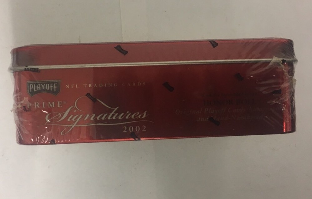 2002 Playoff Prime Signatures Factory Sealed NFL Hobby Tin Box. We will ship FREE via US Mail Priority. Please check out our other NFL items. We stock a large selection of factory sealed NFL boxes and sets.