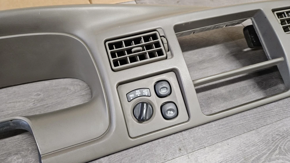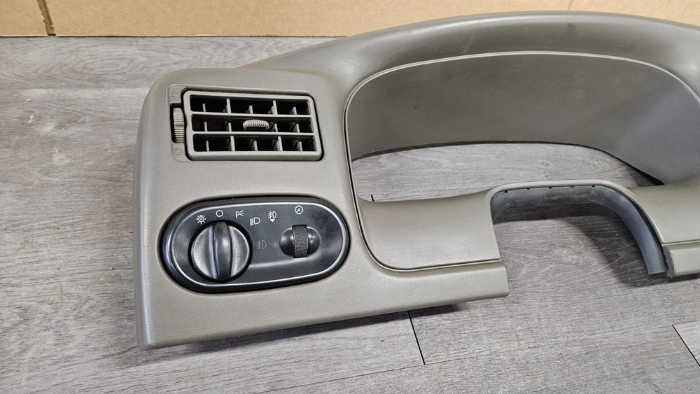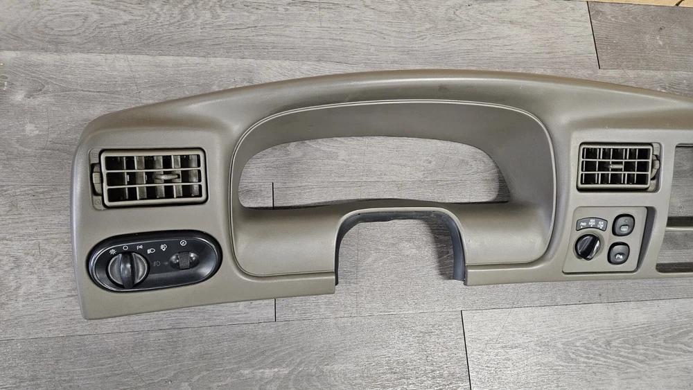 2003-2005 Ford Excursion Interior Dash Trim Bezel OEM Interior Color: Medium Parchment Dark Tan Good used condition. OEM dash bezel out of a wrecked 2003 Excursion. No cracks or breaks, all mounting tabs are intact. Shows signs of wear as it's a used 22 year old plastic bezel. All switches included but untested. Vents have a fair amount of dirt/dust build up and should be cleaned out before install. There are 3 RCA cable ends mounted to the right side of the bezel as shown in photos. Please view all photos before purchase. Terms of Sale Items are inspected for any damage and tested to the best of our ability. Keep in mind many parts are removed from salvage vehicles and not able to be tested. Returns accepted for items damaged in shipping and electrical items that don't work as they should, but not for buyers remorse. Returned items are inspected for any tampering or missing pieces and buyers will be reported accordingly. IF YOU HAVE ANY PROBLEMS WITH YOUR ORDER PLEASE REACH OUT TO US BEFORE LEAVING A NEGATIVE FEEDBACK Shipping Information Most items will ship out same day or next business day shipping via FedEx Ground/Home Delivery or USPS Priority Mail. If you have any special shipping requests or inquiries please reach out before placing your order.