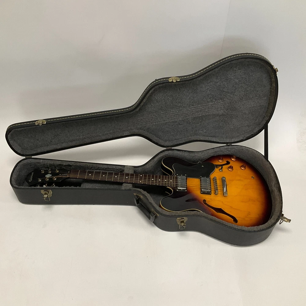 You are looking at a Epiphone DOT VS Sunburst Semi-Hollow Body Electric Guitar with Case This item is previously owned. The guitar has some evidence of wear from use. Missing one of the strings. Comes with a hard case. The case has some surface marks and wear. Missing a screw at the pick guard. Please see all pictures for details! About Us Customer service is our #1 priority! If for any reason you are dissatisfied with your purchase we offer a 30 day money back guarantee unless otherwise noted in the listing (AS-IS/For Parts - No returns.) We only accept items back in the condition that they were sent to you. Items that are listed AS-IS are not eligible for this money back guarantee. If you are unhappy with your purchase PLEASE contact us BEFORE leaving feedback or contacting eBay so we can work with you to resolve any problems. Shipping When we charge shipping to our customers we only pass on to our buyers exact shipping costs - no added fees. We offer combined shipping for multiple items purchased, so if you purchase more than 1 item from us, please wait for us to combine shipping costs. We require signature confirmation on all items that sell for $750.00 & more per eBay's selling policy. We also insurance all items that sell for $250.00 & more. PLEASE NOTE: WE DO NOT WORK/SHIP ON HOLIDAYS OR WEEKENDS! We use the eBay Global Shipping program for international shipping. DLLR License #991 Please note, we are not an authorized distributor or manufacture's representative of this item. *This product may contain a chemical known to the state of California to cause cancer and birth defects or other reproductive harm* Track Page Views With Auctiva's Counter