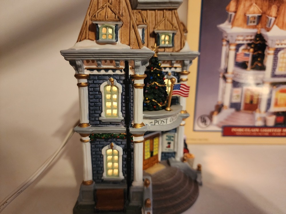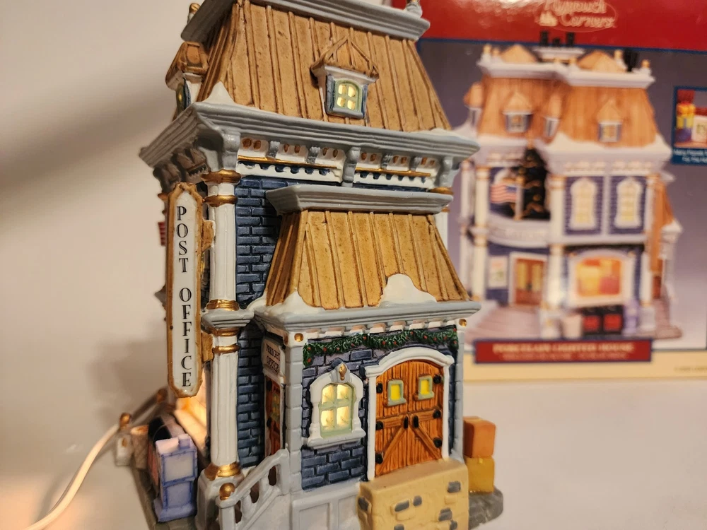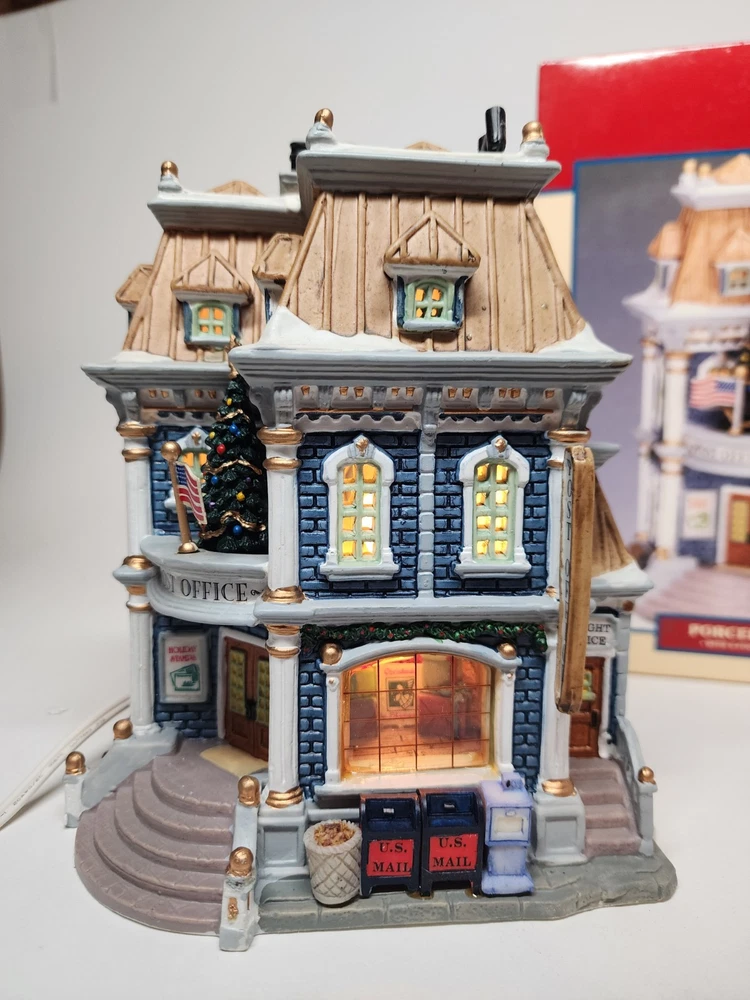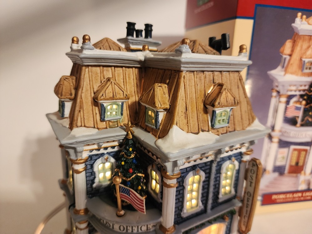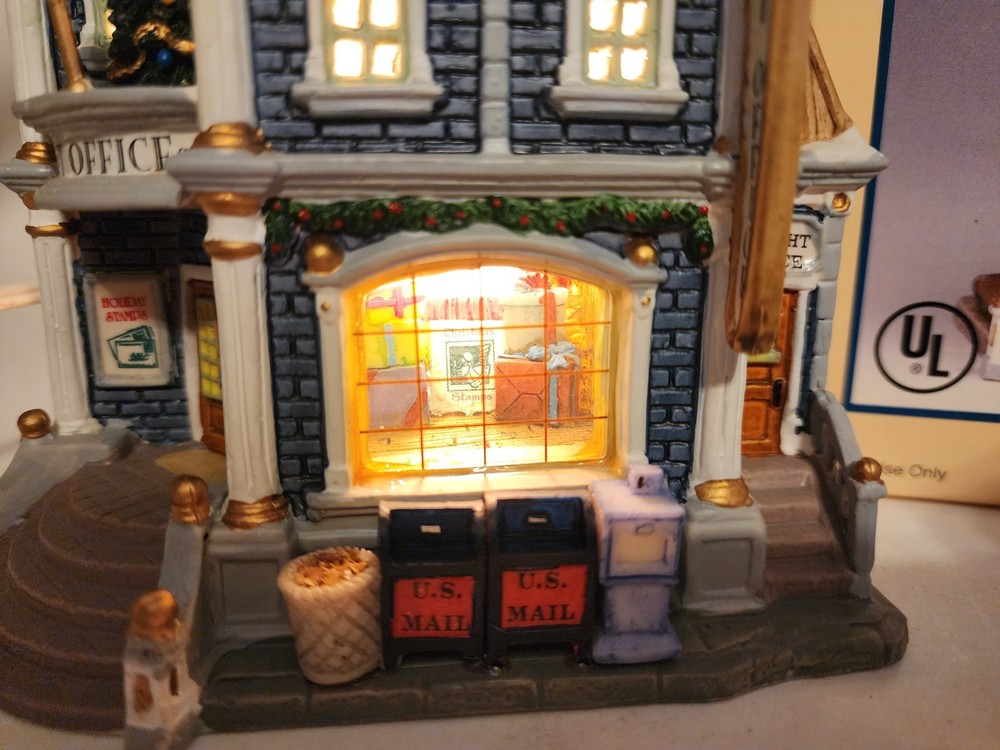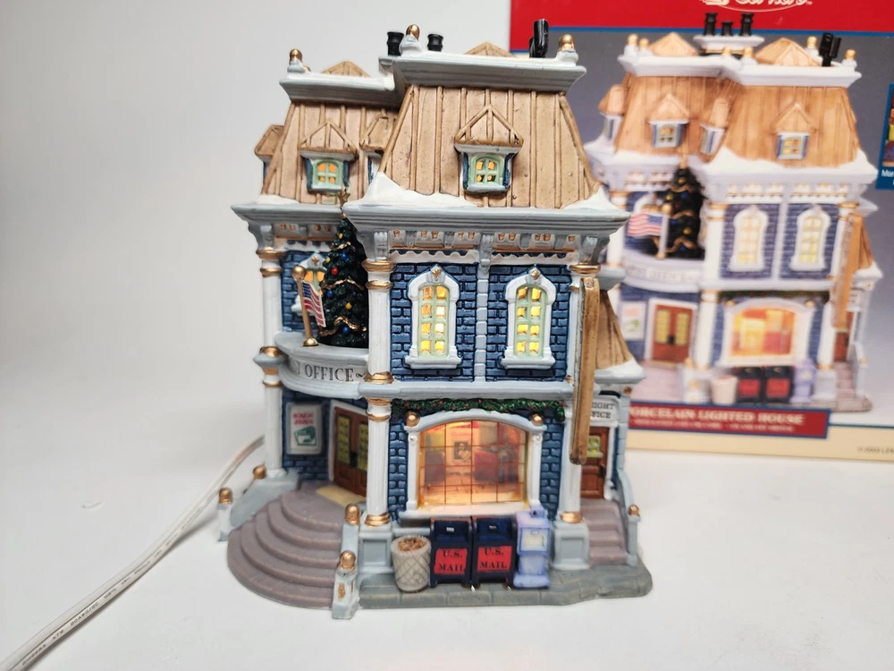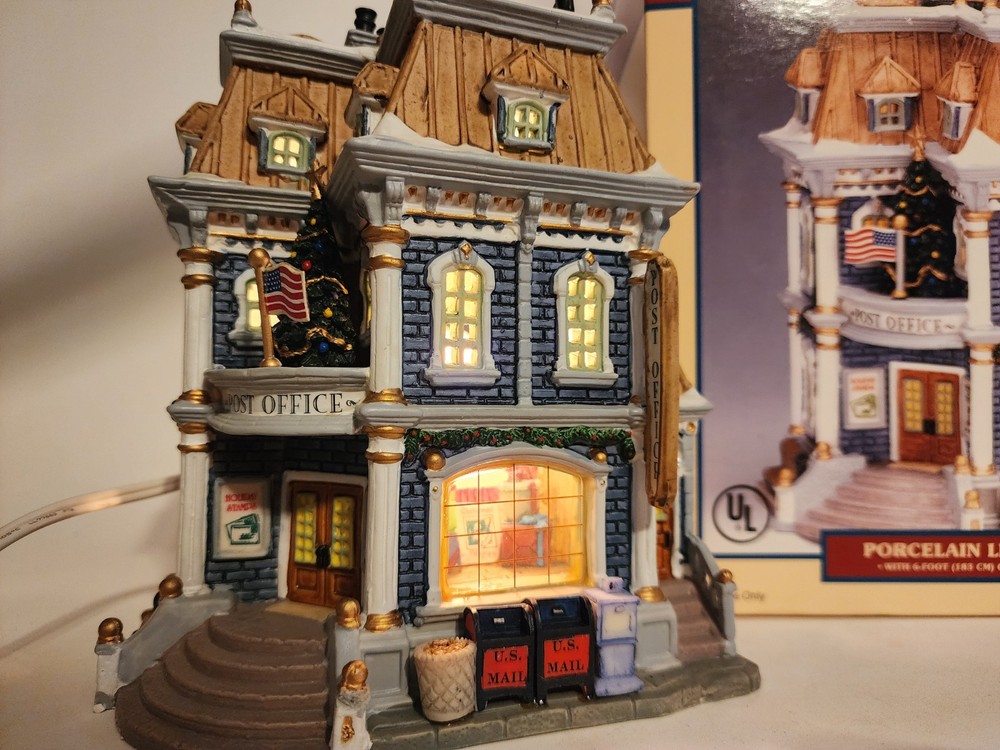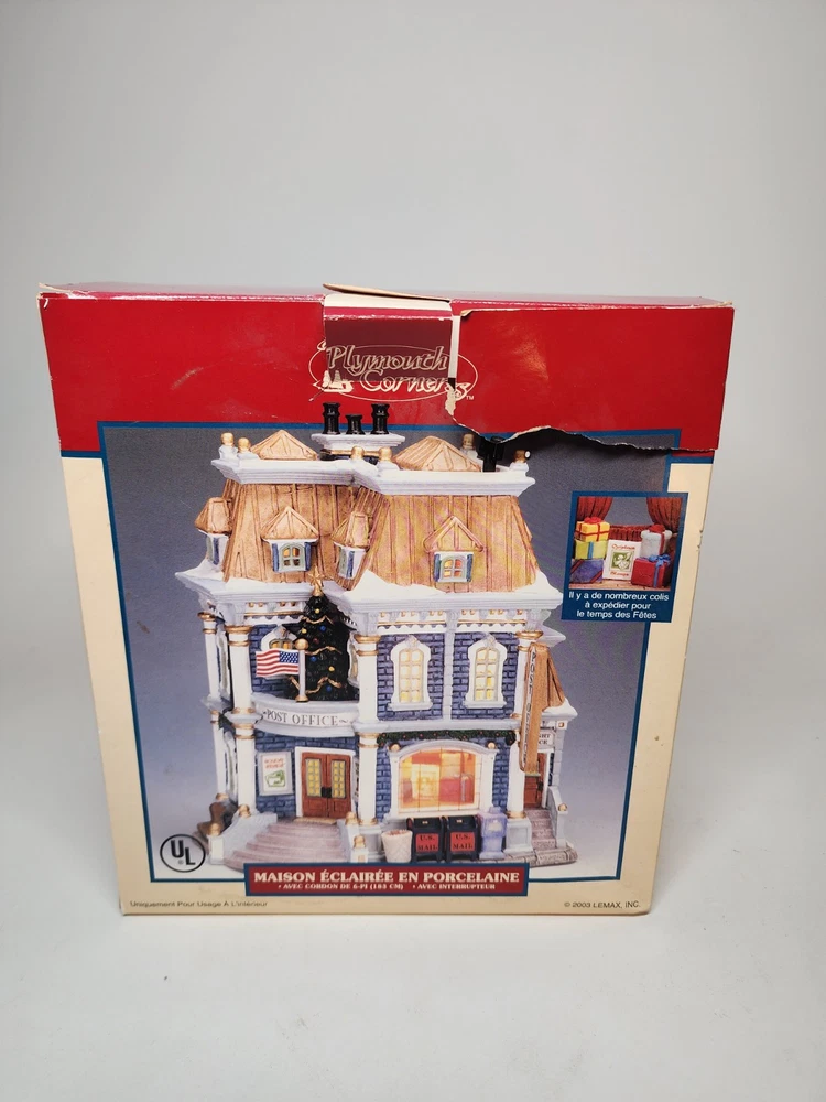 Material: Porcelain Item Weight: 3 lb Color: Multicolor Occasion: Christmas Item Length: 6.5in Time Period Manufactured: 2000-2009 Subject: Post Office Original/Reproduction: Original Theme: Seasonal Country/Region of Manufacture: China Features: Boxed Packaging: Box Handmade: Yes Antique: No Era: 21st Century (2000-Now) Item Height: 7.5in gtin13: 0728162358363 Character: Post Office UPC: 0728162358363 Item Width: 4.5in Pattern: Post Office Year Manufactured: 2003 Type: Christmas Village Room: Any Room, Office Collection: Plymoth Corners Shape: Rectangle Character Family: Christmas Size: Medium Finish: Painted Brand: Lemax