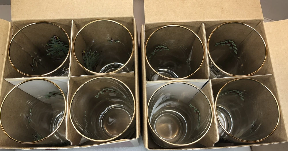2003 Set of 8 Spode Christmas Tree Santa 15 Ounces Highballs with Gold Rims Two boxes of 4. Total of 8 Glasses. Boxes show slight wear and both have old price tag scares on bottom. Will be shipped double boxed. No Returns. Comes from a smoke free home. What you see pictured is the item you’ll receive. Shipping is calculated based on your location by The USPS or UPS. Check out my other auctions and come back often! I am moving out of state and selling my entire collection. Thanks and Cheers.