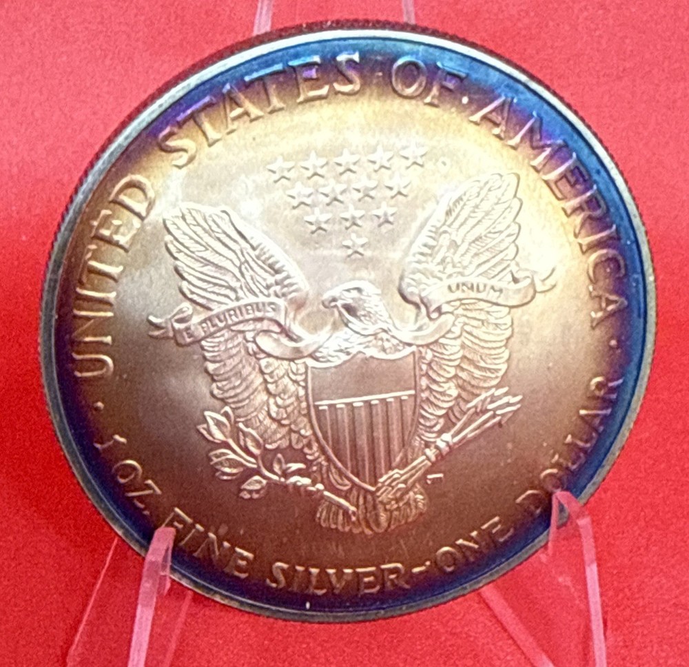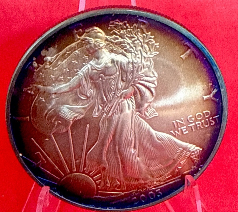 The product is a 2003 Silver Eagle coin that is described as being in BU/UNC condition and featuring a "TONER" that is very nice. This coin is composed of silver and is uncertified. It is a desirable collector's item for those interested in bullion coins. The 2003 Silver Eagle is a popular choice for investors looking to add physical silver to their portfolio.