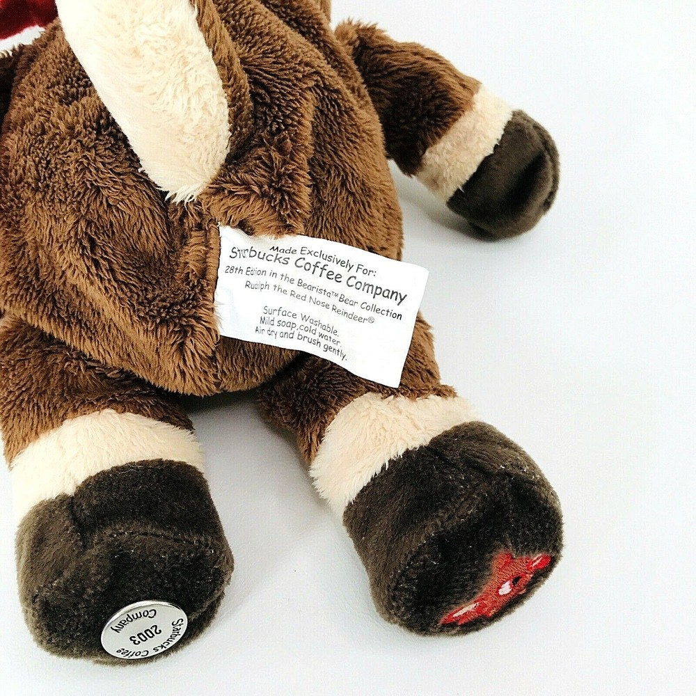 Up for purchase: 2003 Special Edition Rudolph the Reindeer Starbucks Barista Bear. It is approx. 12 inches tall. It is in very good condition. My home is SMOKE FREE. Any issues/flaws will be noted in the condition description. Thank you for your visiting my store. I appreciate and value your business. Condition ratings: Fair - shows use and will more than likely be flawed. I will rarely list anything in this condition unless it is an extremely hard to find item. Good - shows wear Very Good Condition - used and may show some wear, but usually very little. Excellent - used but appears to have not been used. New - new from a retail store. I strive to sell only the items are in very good condition or better. I clean and go over each item carefully before I ship it . I do hope you enjoy your purchase and I look forward to dealing with you again in the future. Import duties, taxes and charges are not included in the item price or shipping charges. These charges are the buyer's responsibility. Please check with your country's customs office to determine what these additional costs will be prior to bidding/buying. These charges are normally collected by the delivering freight (shipping) company or when you pick the item up – do not confuse them for additional shipping charges. I do not mark merchandise values below winning bid amount or mark items as "gifts" - US and International government regulations prohibit this practice. is practice. ohibit this practice.