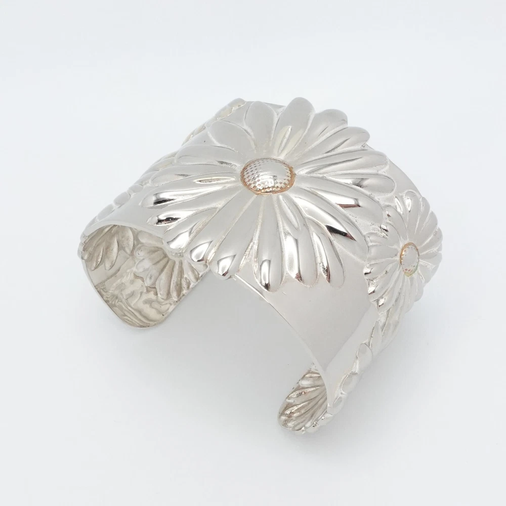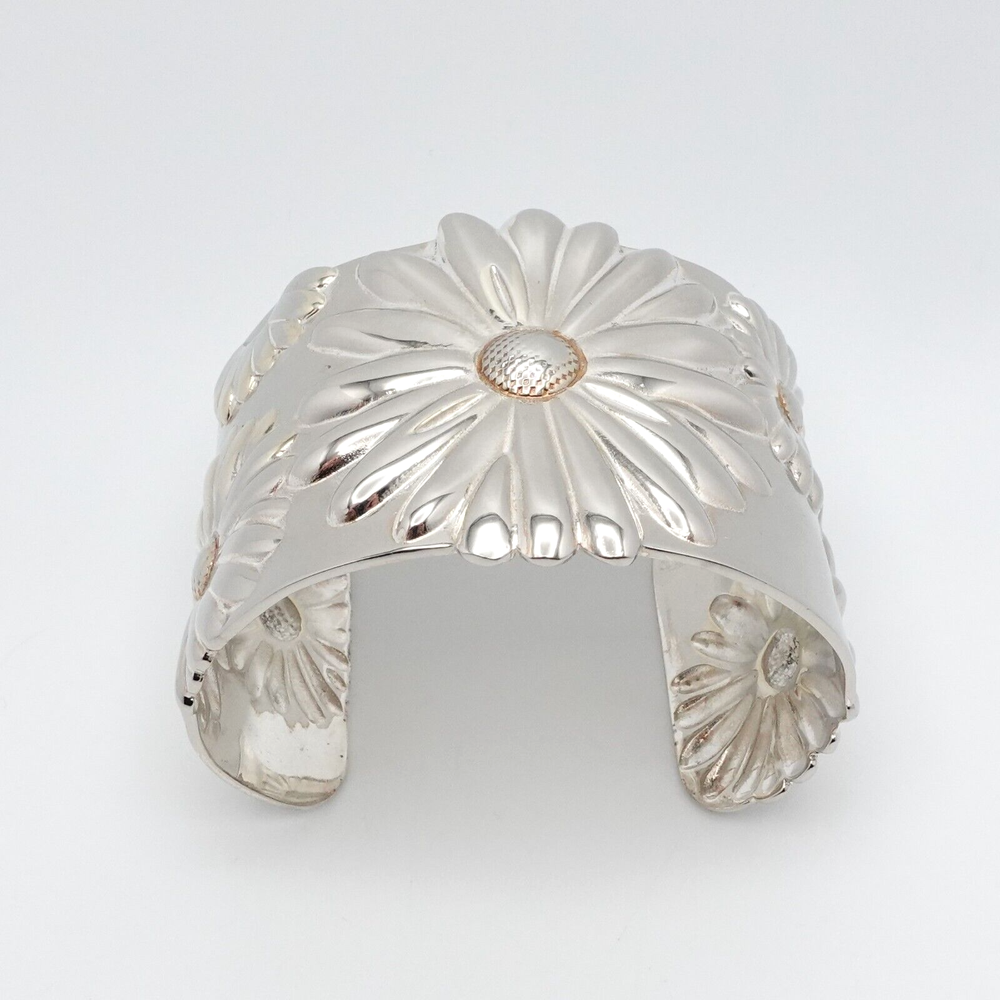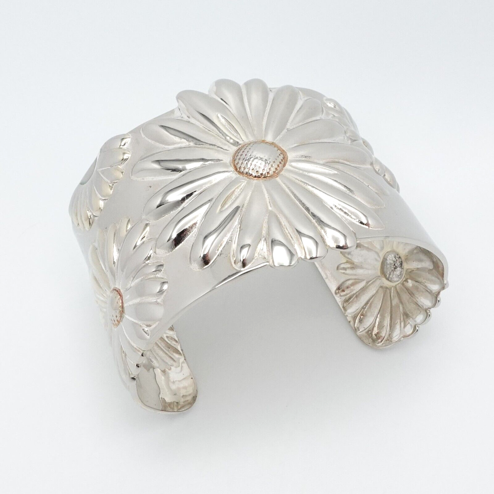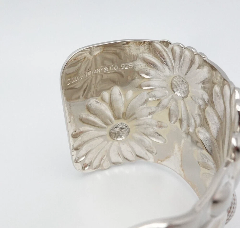 2003 Tiffany & Co Sterling Silver Daisy Flower Wide Cuff Bracelet 7 Inch