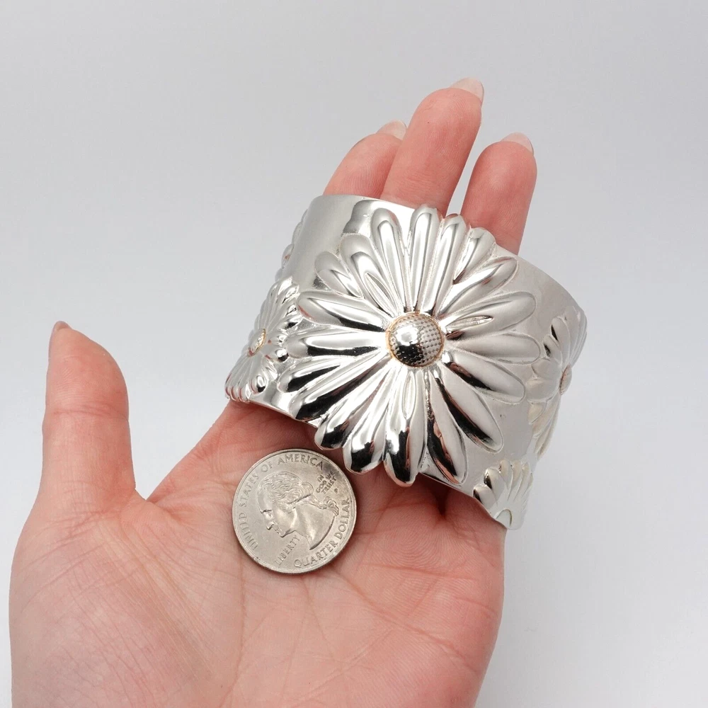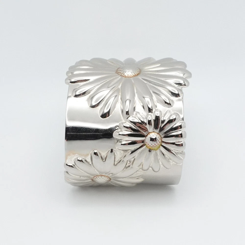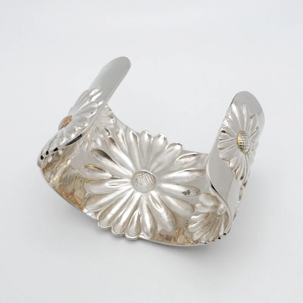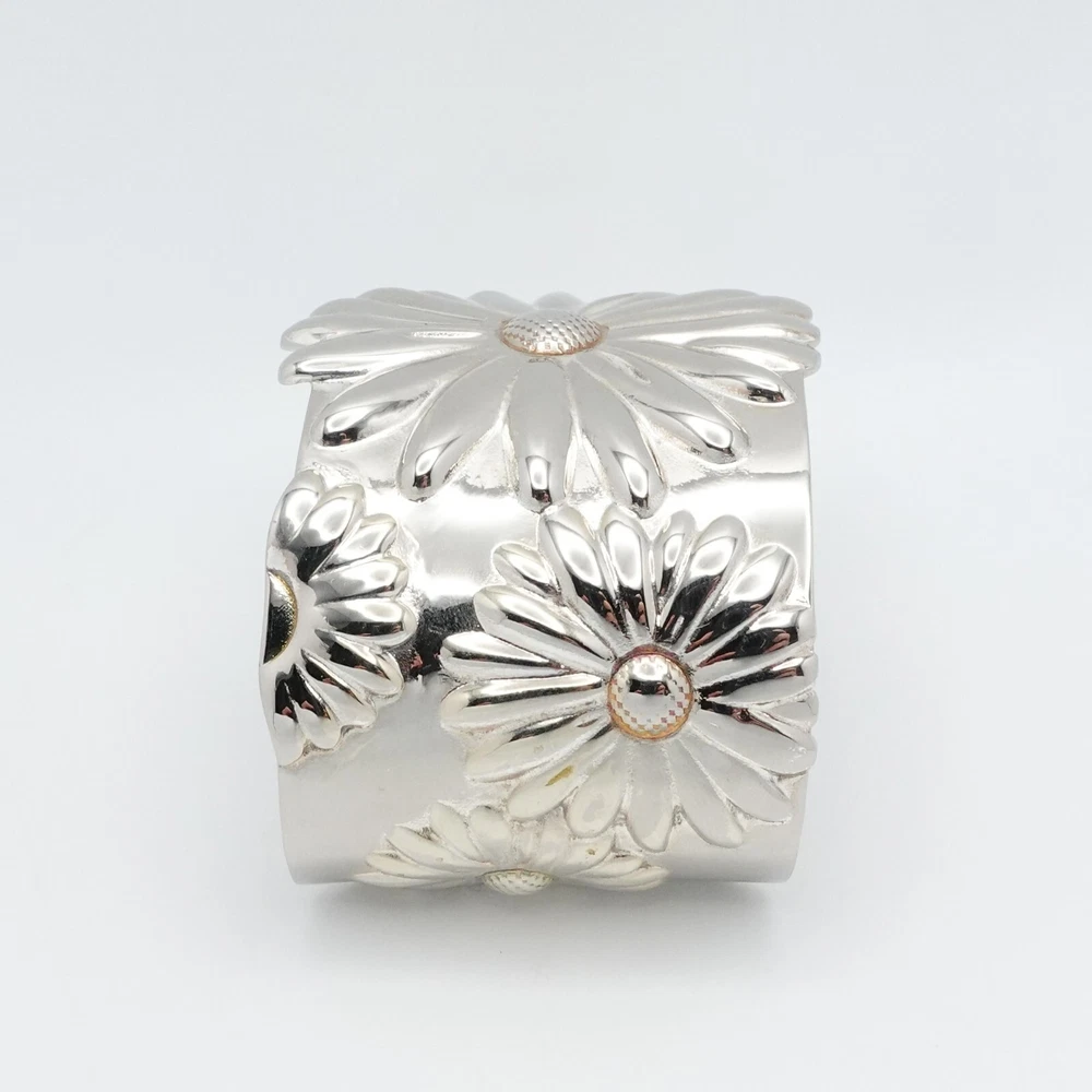 2003 Tiffany & Co Sterling Silver Daisy Flower Wide Cuff Bracelet 7 Inch