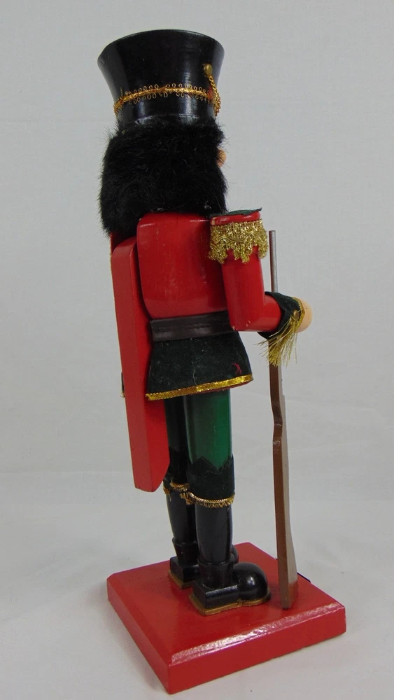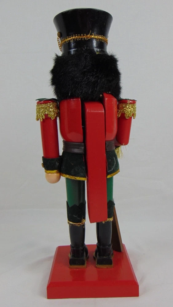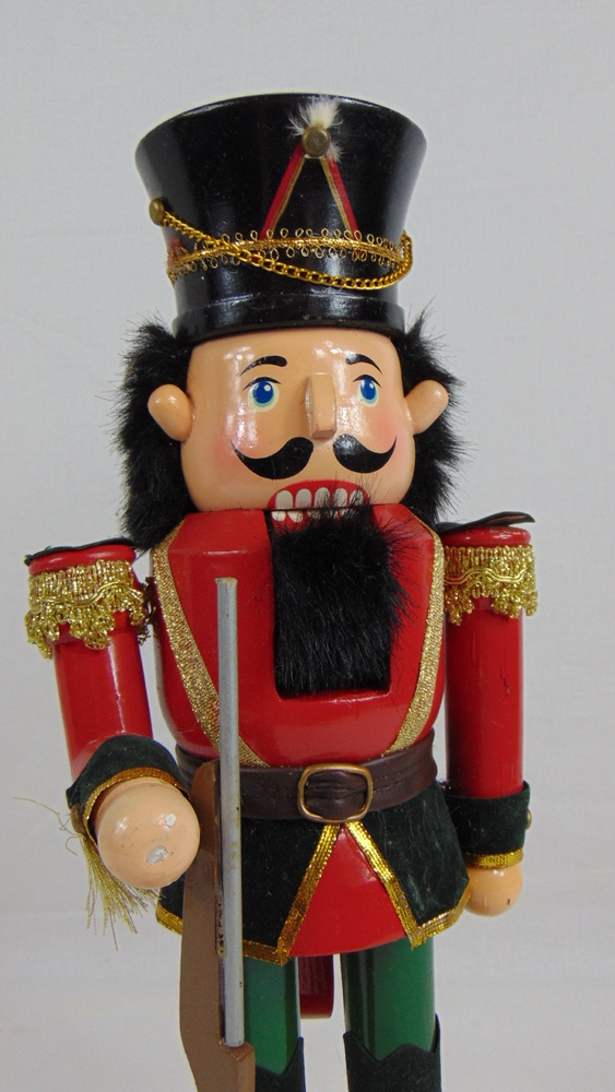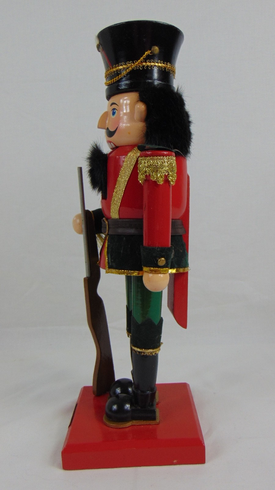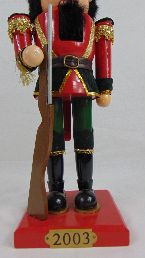 2003 Wooden Soldier Nutcracker 14" Christmas Decor Red Green Uniform With Rifle About 14" tall.