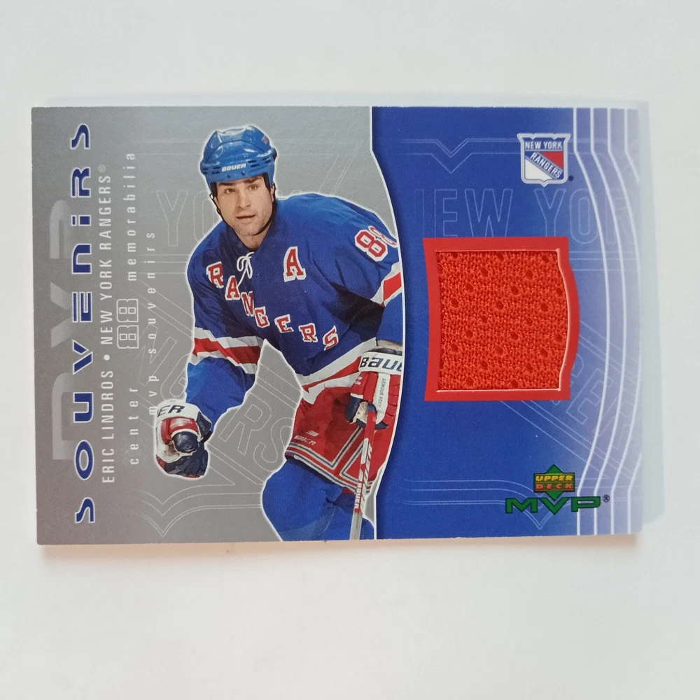 This is a rare and valuable sports trading card featuring Eric Lindros, a former player for the New York Rangers. The card is from the 2003-04 Upper Deck MVP set and includes a patch and memorabilia insert. It is a must-have for any fan or collector of hockey cards. The card is ungraded and has not been autographed. The card is part of the National Hockey League (NHL) and is perfect for those who love ice hockey. It is a great addition to any sports trading card collection. The card number is S25 and it is from the 2003-04 season. Get your hands on this rare Eric Lindros card today!