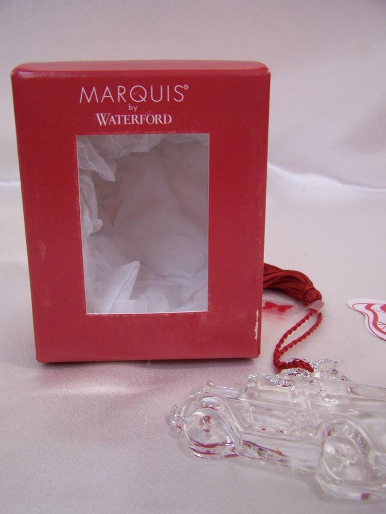 2004 Our First Christmas Ornament Marquis by Waterford Lead Crystal NIB 2004 "Our First Christmas" Crystal Marquis by Waterford Lead Crystal #128425 Beautiful crystal car ornament dated 2004. The date is on the spare tire on the trunk. This is a b eautiful keepsake to commemorate that very special first Christmas together! Measures 3 1/2" wide Made in Germany Includes red tassel hanger Perfect for gift giving New in mint condition with original box and insert Please email me with any questions. I will respond back quickly. I describe item conditions to the best of my ability and will always point out any flaws or defects that I am aware of. I am an EBay Seller with 100% Positive Feedback! Thank you. Bid with Confidence! See my other listings for more great items! Because I have had a slew of non paying and very slow paying bidders lately I will require payment within 2 days of the end of auction. However, if you need a different arrangement I will be more than happy to work with you, just let me know. INTERNATIONAL BUYERS ARE RESPONSIBLE FOR ALL CUSTOMS CHARGES, PORT CHARGES OR ANY TAXES DUE UPON RECEIPT OF THEIR PACKAGE. All my shipping charges include delivery confirmation. International shipping will be at actual cost. Thank you for bidding on my auctions. Your business is very much appreciated! txzj pxzj3978 txzj44 txzj69