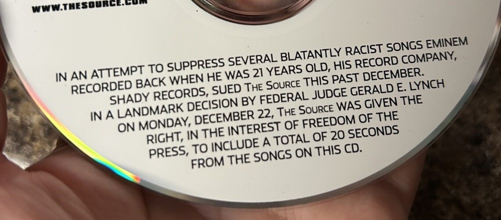 This is a rare vintage item! It’s a cd that came with an issue of the source from 2004 when Benzino and Eminem had a battle going on. The cd was out out by the source which was owned by benzino. Very rare and very vintage! I don’t have the magazine anymore but this has been in my possession since 2004!!!